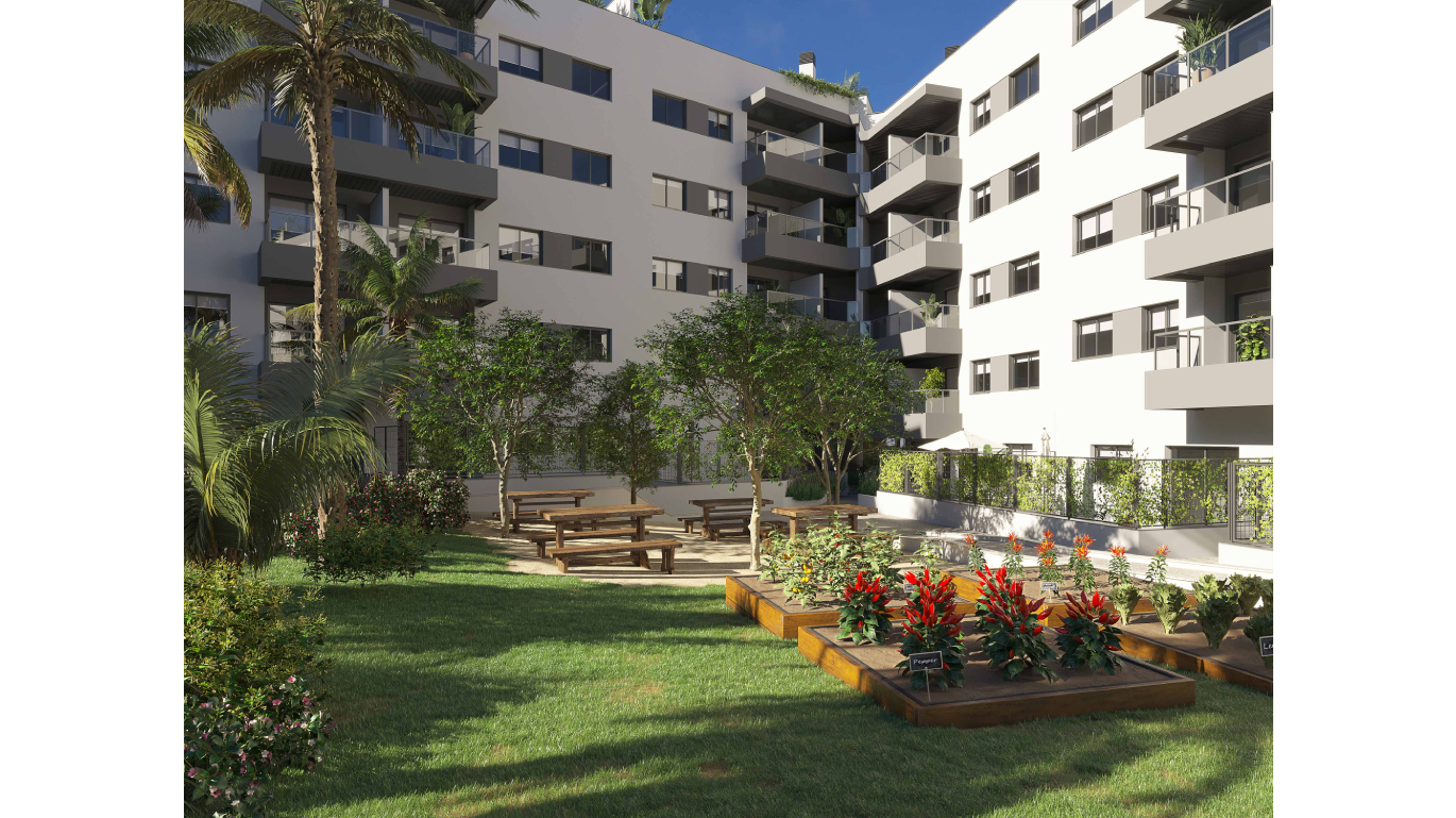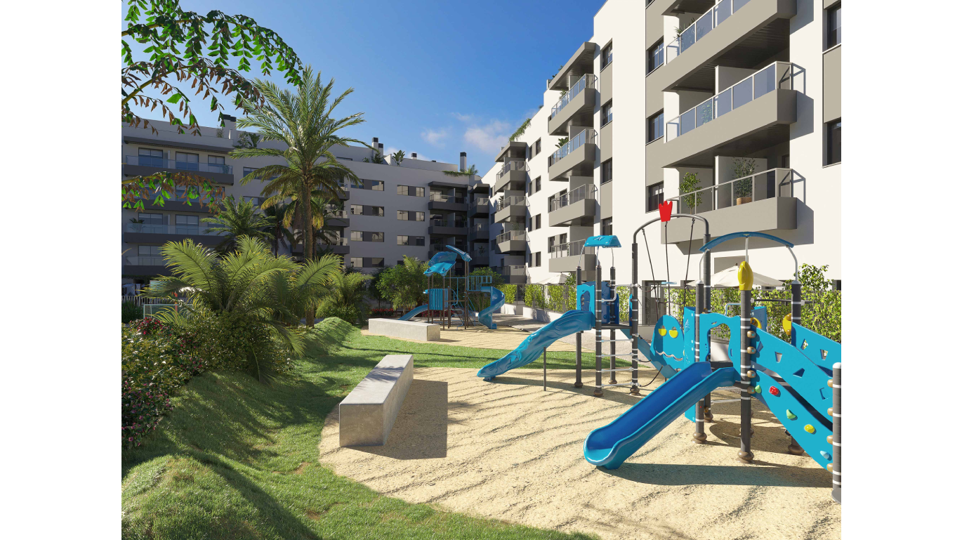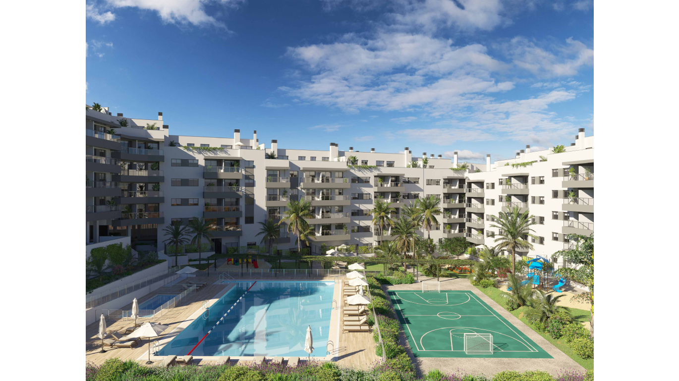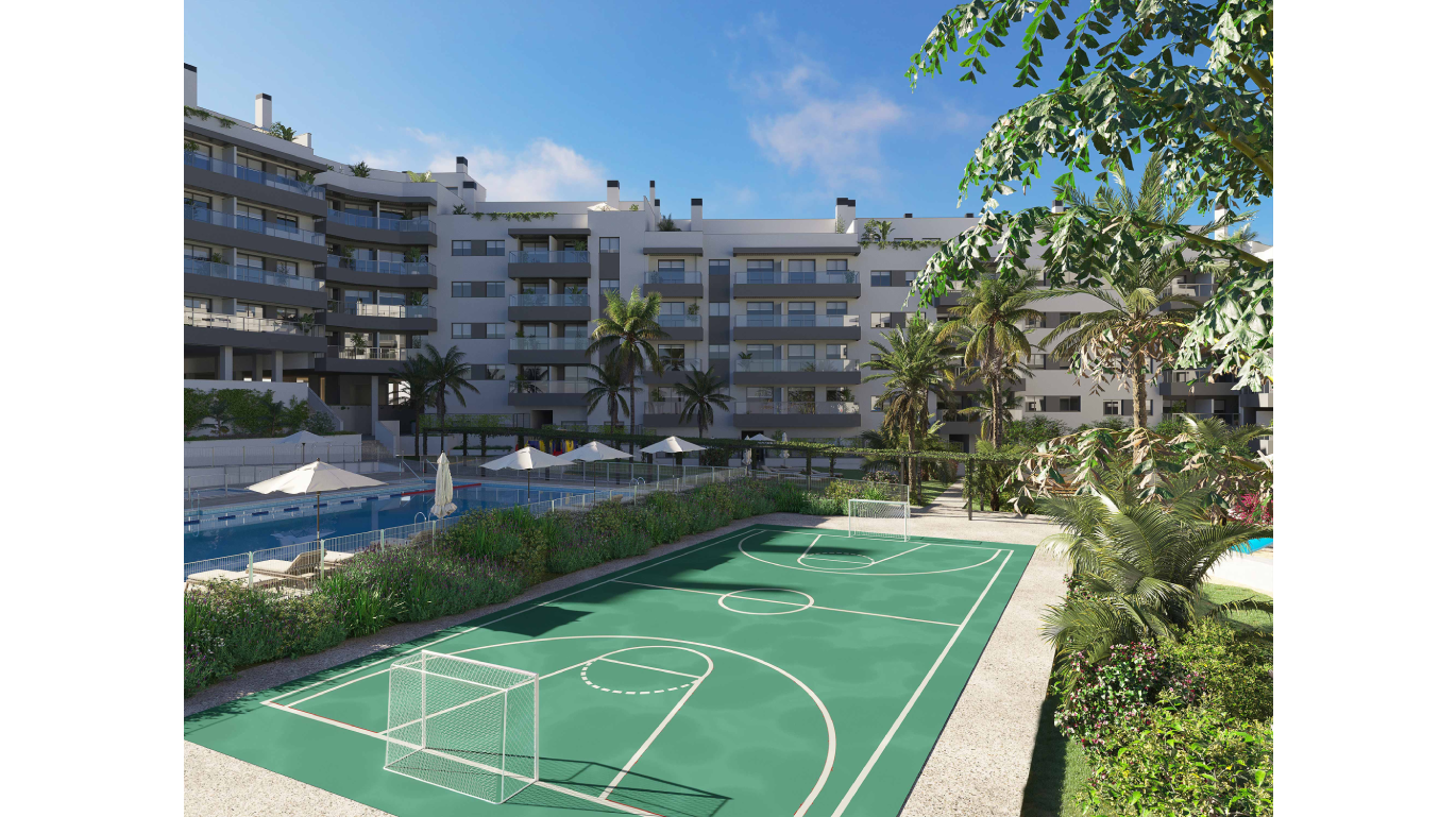 We have designed the promotion so that you can enjoy it all year round, that is why it has covered and uncovered areas with garden areas, games for the little ones, a swimming pool and an area for sports on sunny days. It has two swimming pools, a street workout, a sports court, children's climbing wall, a play area, an urban garden and living areas with Wi-Fi pre-installed.
