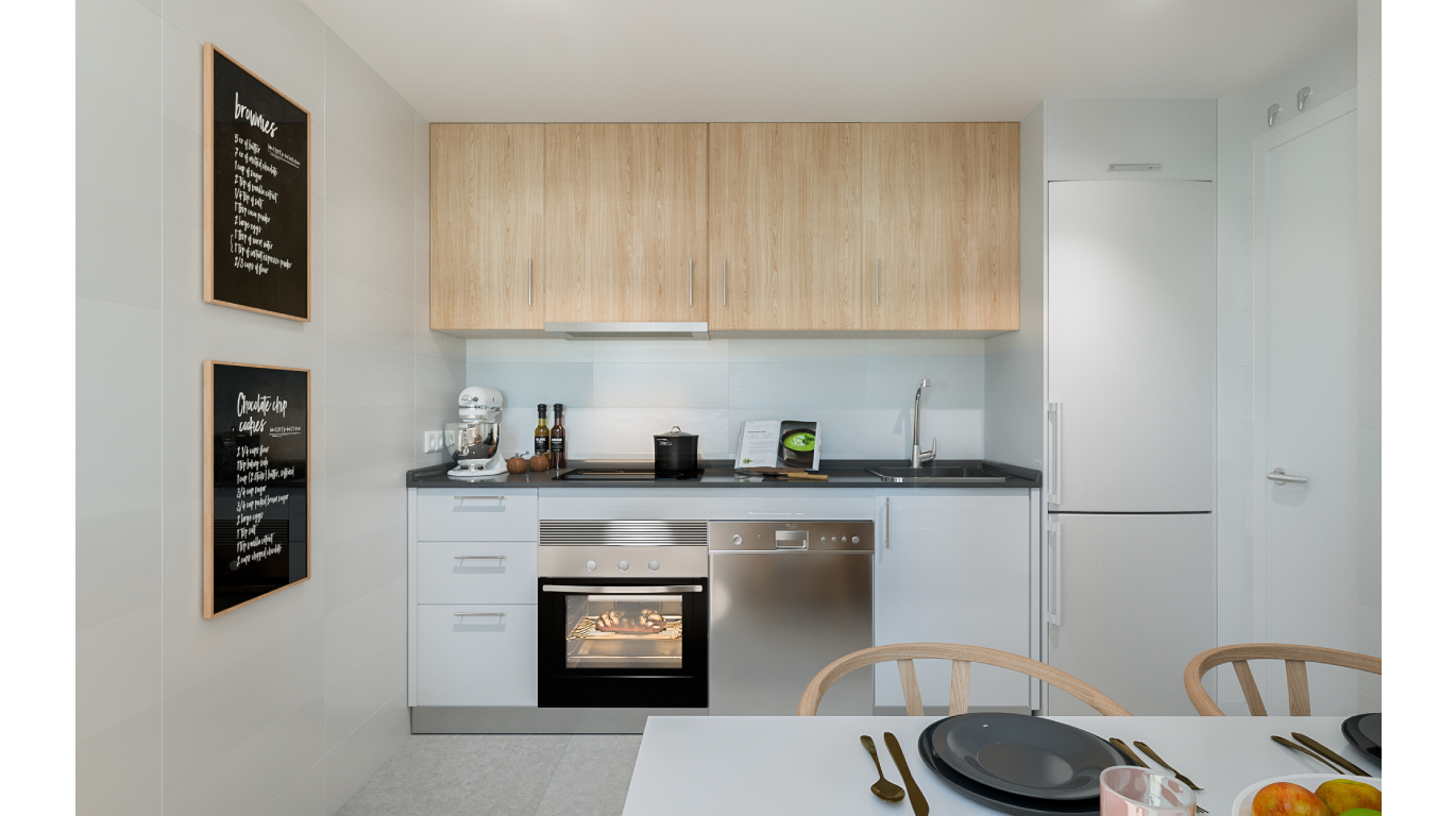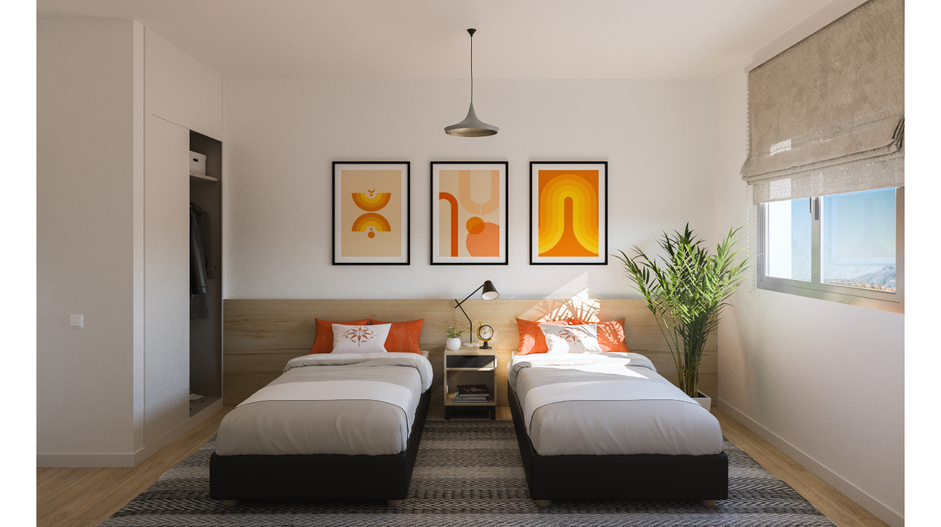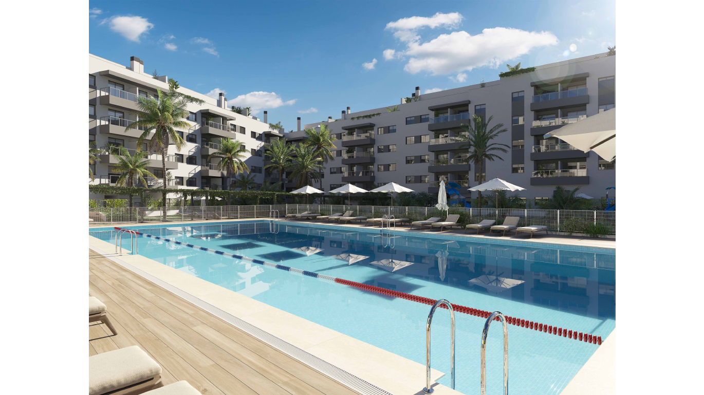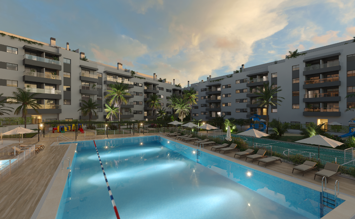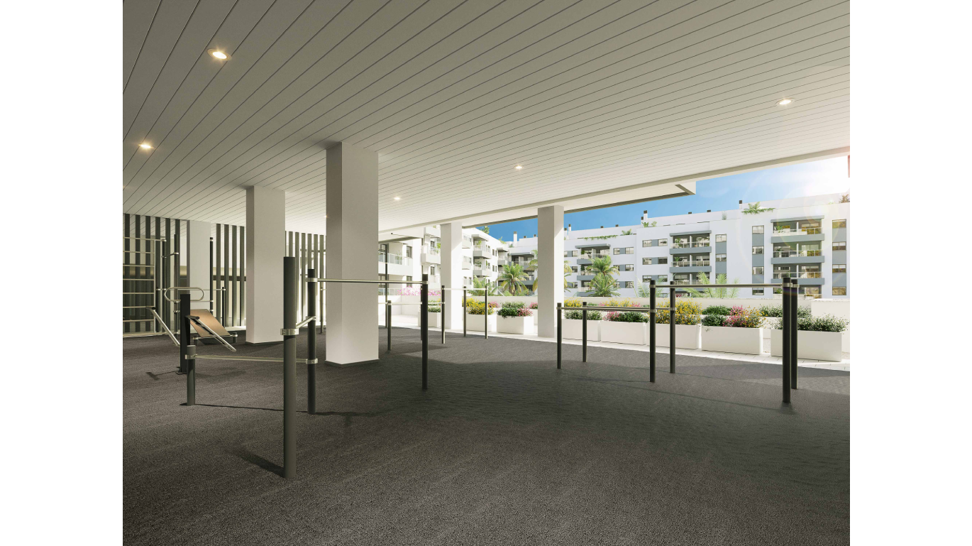 We have designed the promotion so that you can enjoy it all year round, that is why it has covered and uncovered areas with garden areas, games for the little ones, a swimming pool and an area for sports on sunny days. It has two swimming pools, a street workout, a sports court, children's climbing wall, a play area, an urban garden and living areas with Wi-Fi pre-installed.