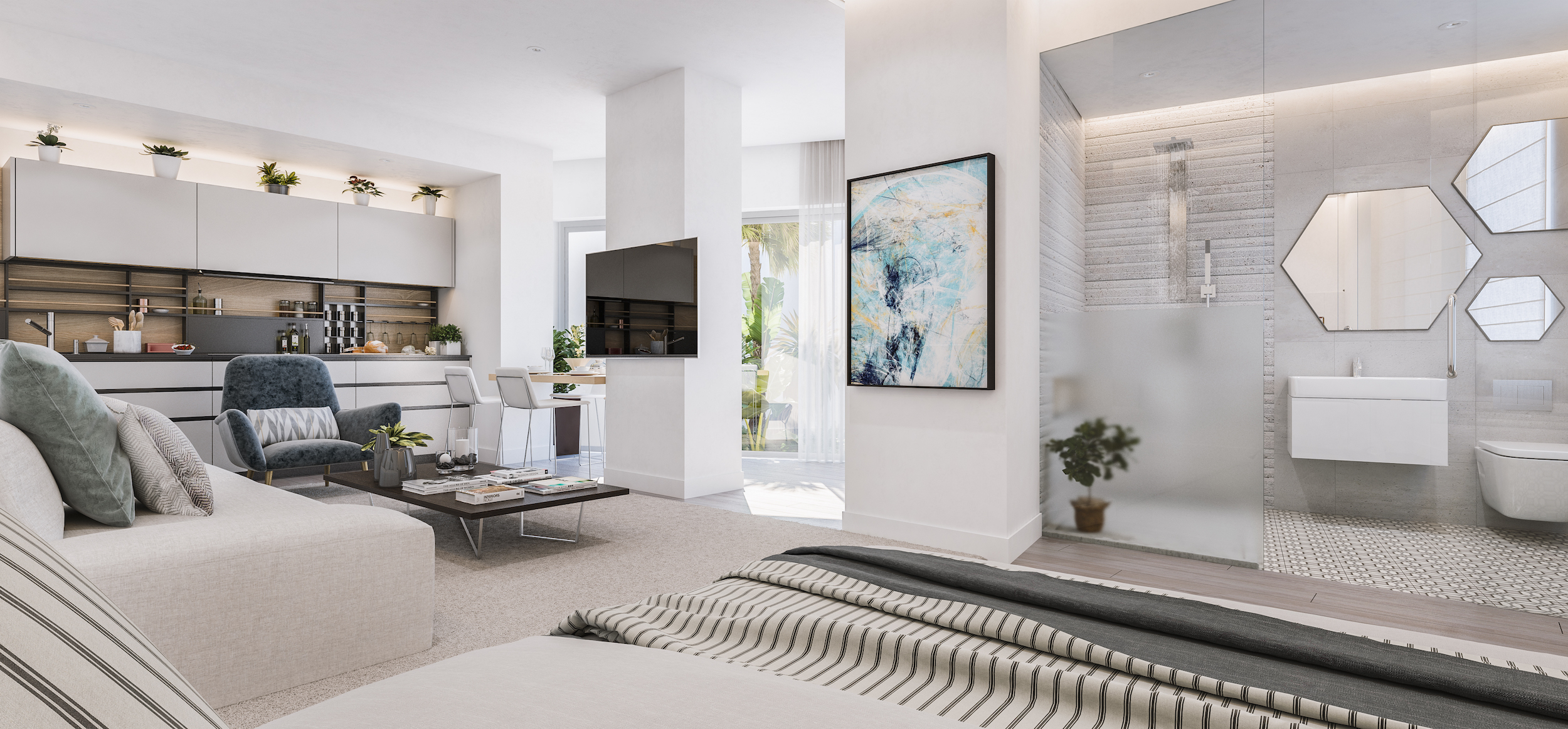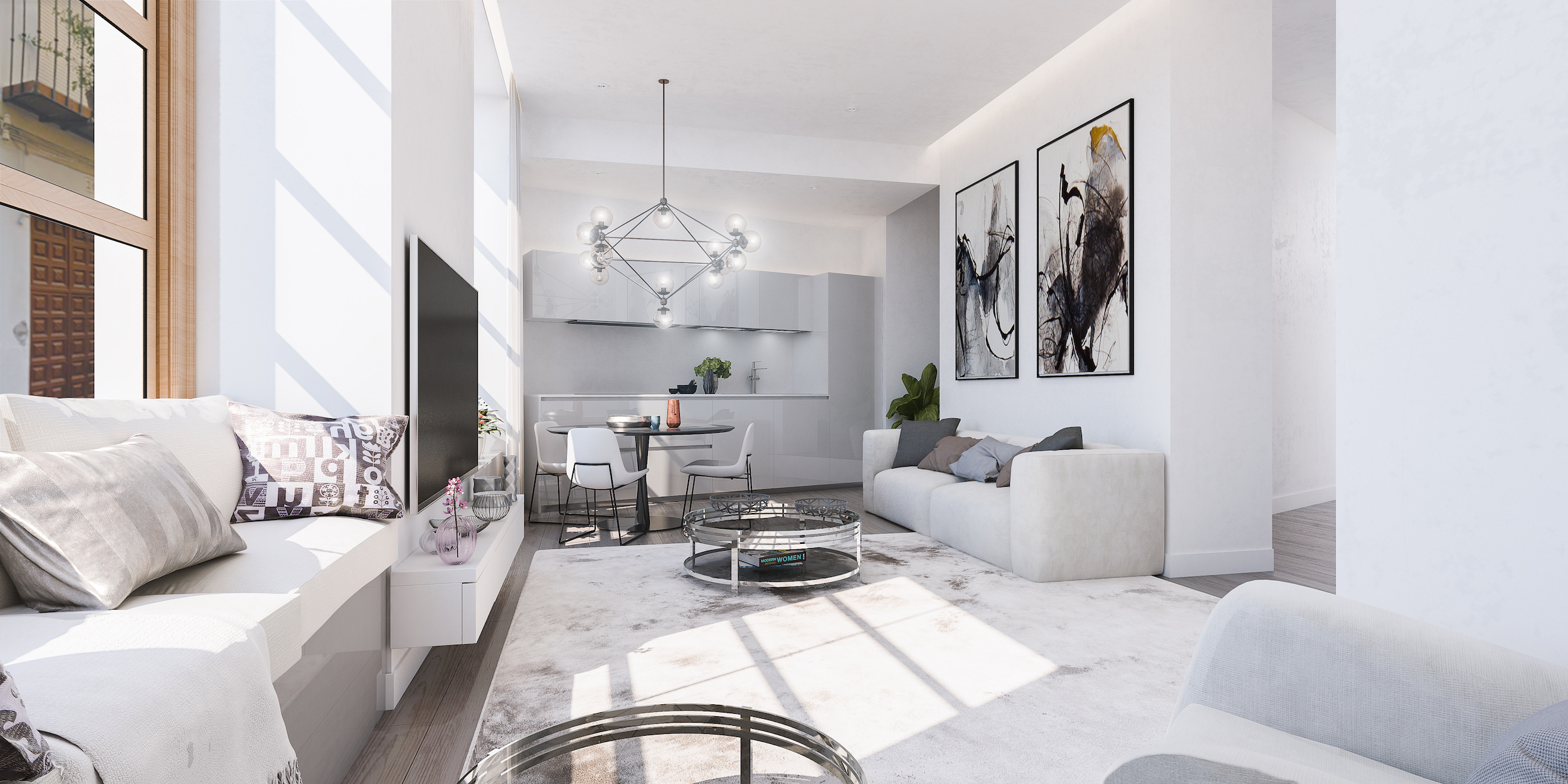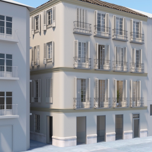 Ett stenkast från folkkära Plaza de la Merced och Picassos födelsehus, ligger detta hus på en lugn gata med endast totalt 6 lägenheter. På bottenvåningen finns en gemensam patio (innergård) som också fungerar som ljuskälla för de lägenheter som inte vetter mot gatan. Tack vare enorma fönster från golv till tak, och den rymliga takhöjden, blir även dessa lägenheter väldigt ljusa. Stilen blir industriell design med mycket glas för maximalt ljus och rymd. Stora fönster och franska balkonger mot gatan. Mycket luft, ljus och volym. Fullt utrustat kvalitetskök med spis, ugn, fläkt, mikro, kylskåp, frys och diskmaskin. Fullt utrustade badrum med elektrisk golvvärme, uppvärmd handdukstork och tvättmaskin/ torktumlare. Trägolv genomgående i lägenheten och klinkers i stort format i badrummen. Inbyggda garderober med sliding doors. AC med varm och kall luft.