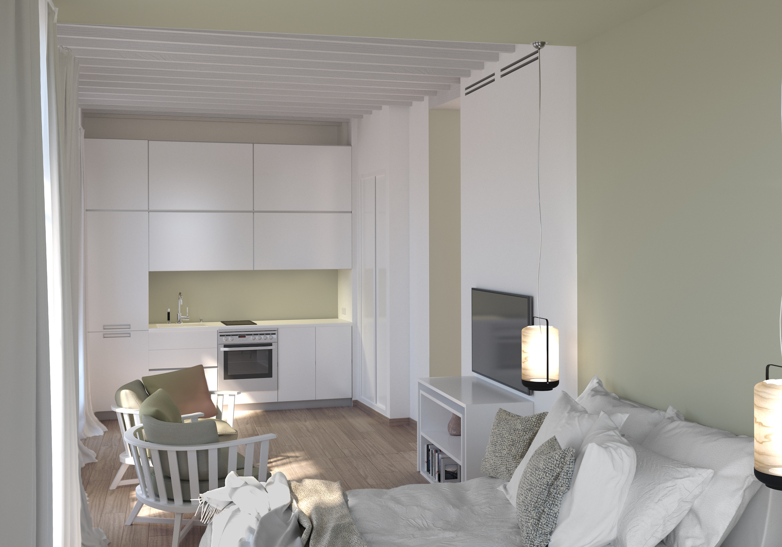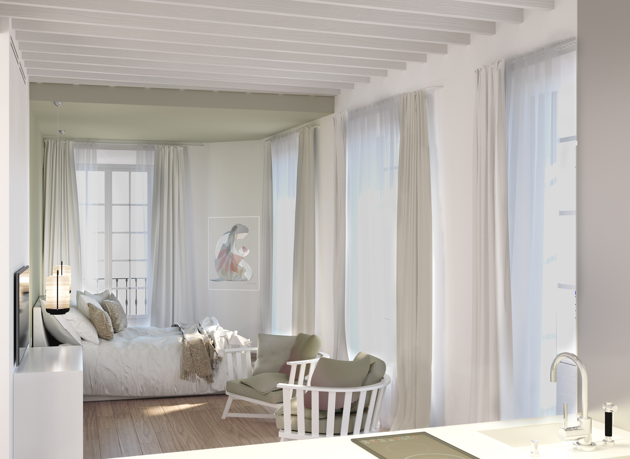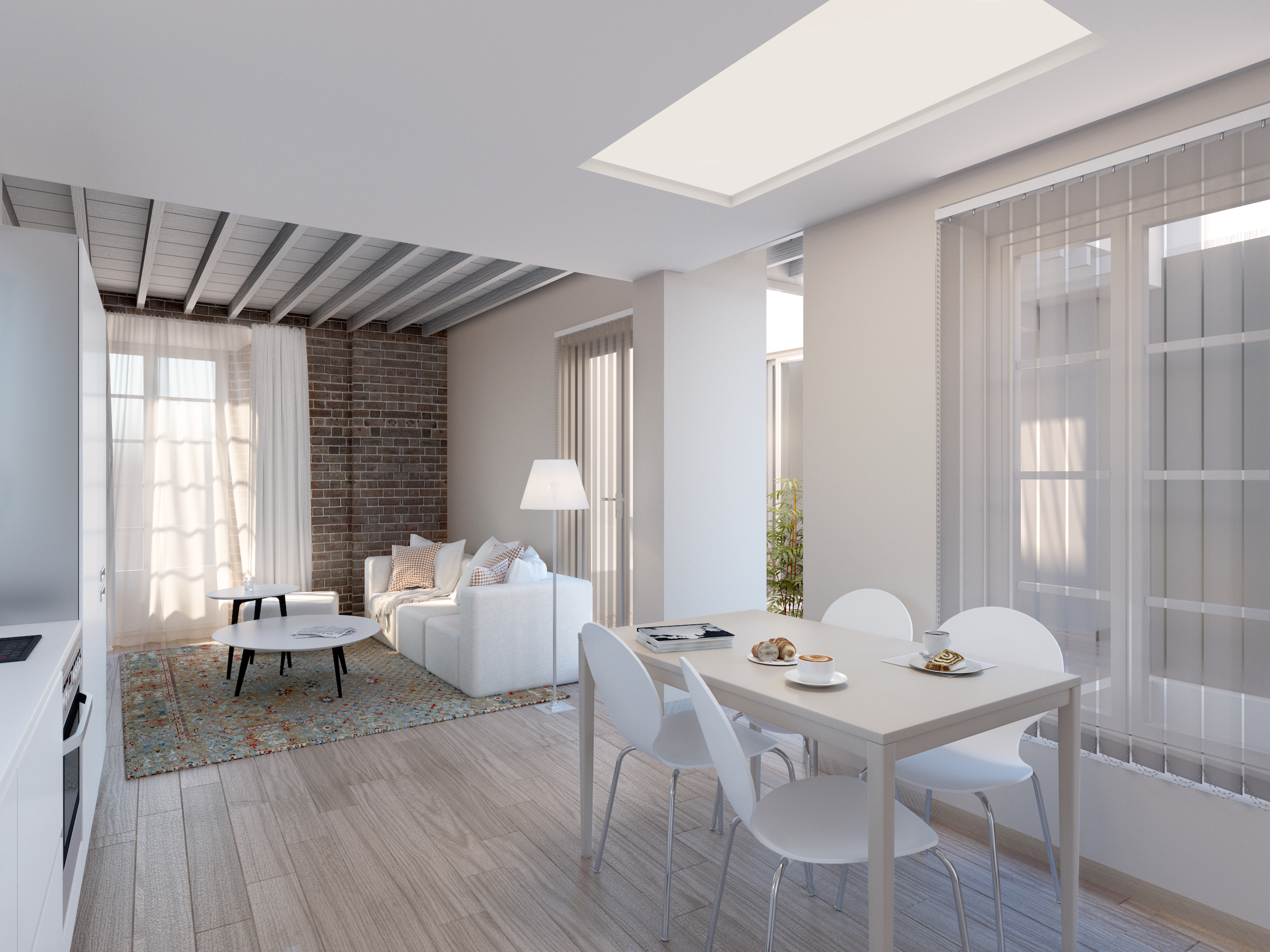 All the apartments have a modern design, respecting the traditional elements of the existing building. They are bright , with high ceilings which provide a unique feeling of spaciousness, luxury and elegance. Choose the apartment you like most; all of them have natural light through façade or patio.