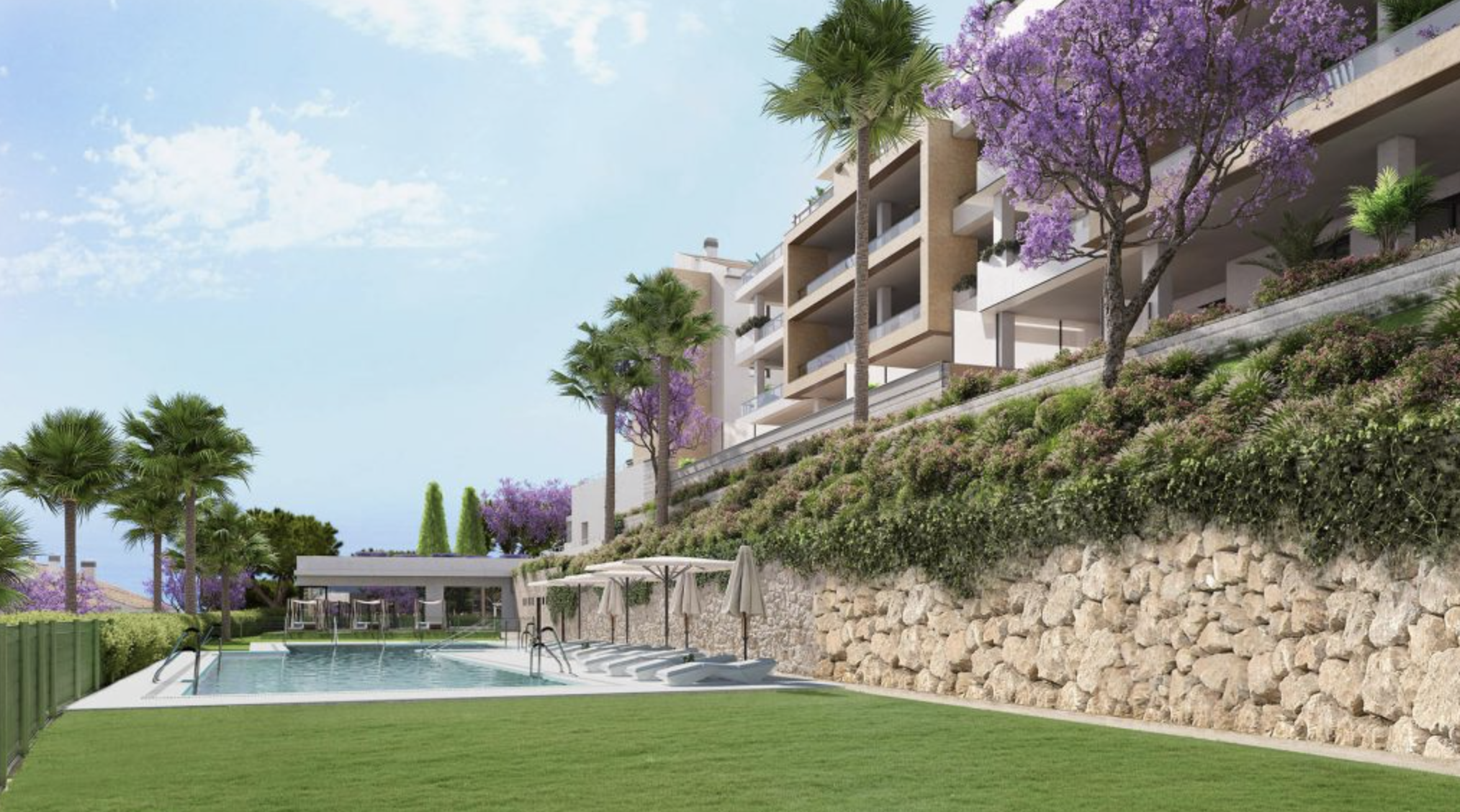 Sat proud and prominent in the green hills of Benalmadena, Serenity is a brand new development which harnesses the benefits of both location and tranquility. There are 2, 3 and 4 bedroom apartments and duplexes with the most spectacular panoramic views of Benalmadena Bay. The old pueblo of Benalmadena is a leisurely 12 minute walk, whilst the beach can be accessed in a 7 minute downhill drive. This means it is easy to reach the centre of all the action, but just as easy to get away from when the crowds become too much and respite is needed. Serenity Benalmadena in Spain is the only new development in the area not affected by the noise of the nearby highway. The community is surrounded by a protected green zone, proving a sense of freedom and nature within its residential setting.