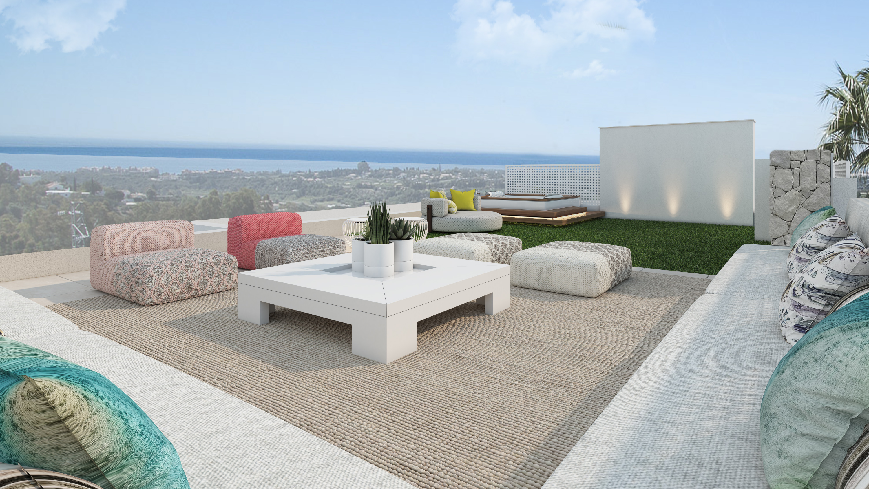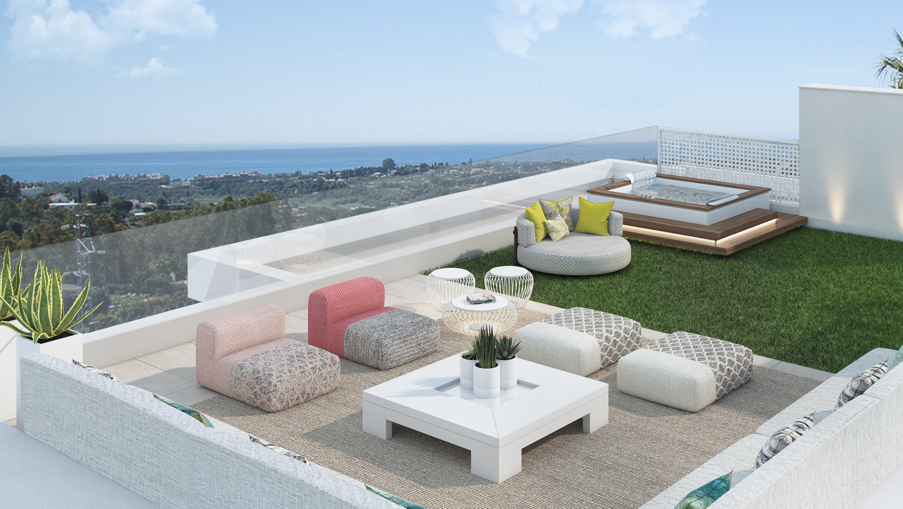The villas offer a beautiful rooftop terrace with 360º panoramic views, perfect for a hot tub, chill-out area and barbecue.