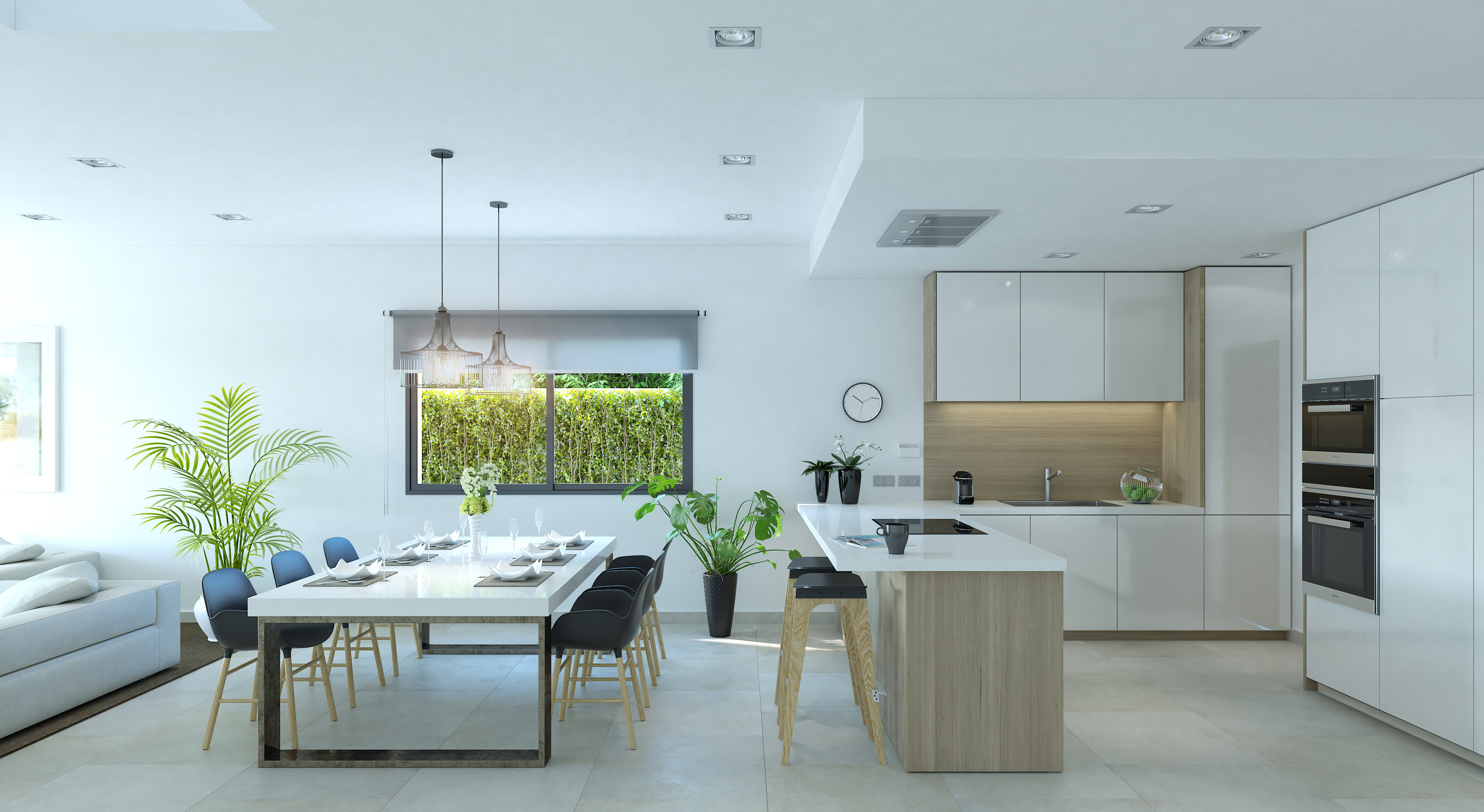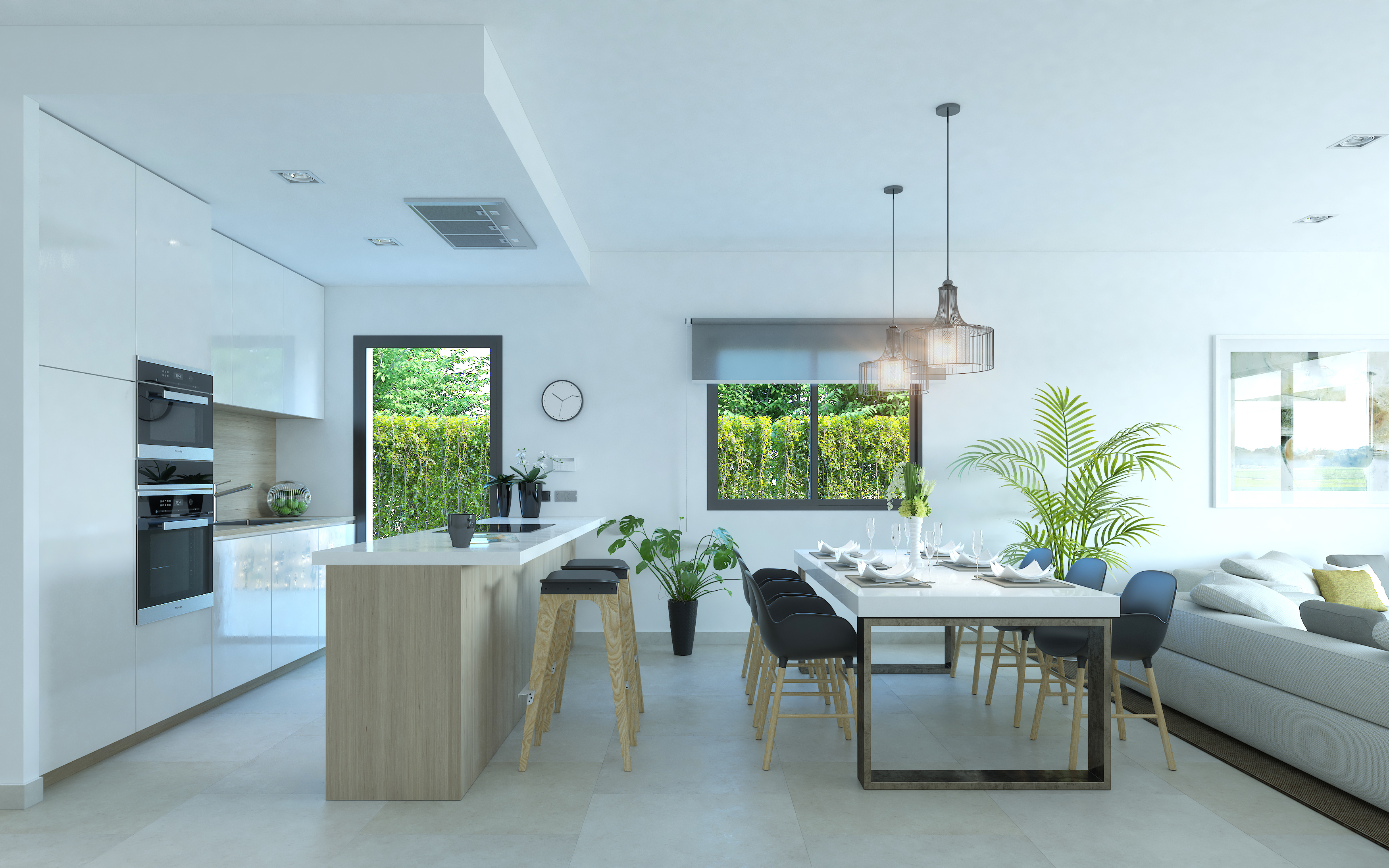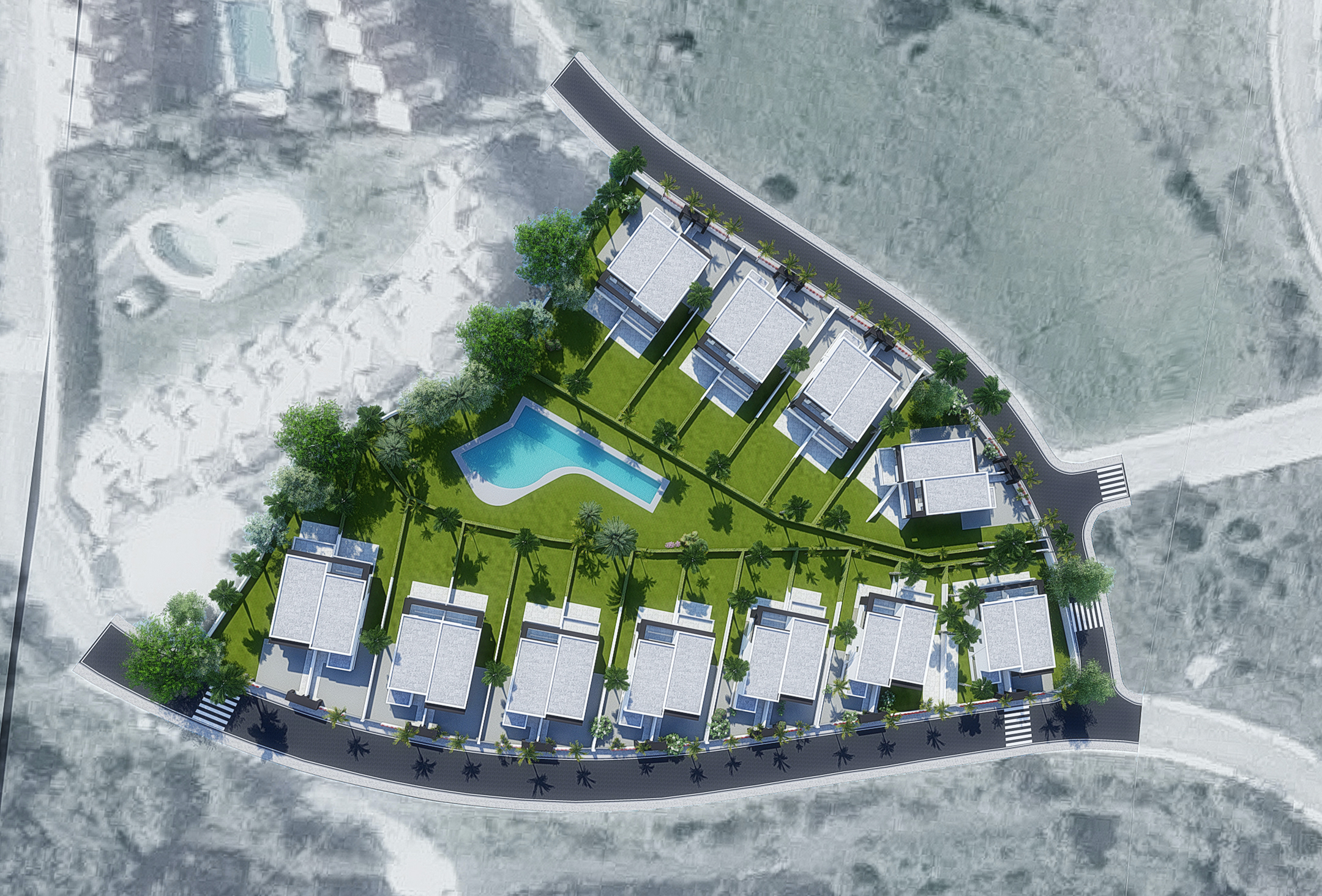 Private plots of minimum 200 sqm connected to the communal gardens and pool area. Each residence is finished to a very high standard, porcelain big format flooring, air condition with independent control in all the rooms, Neff appliances and private parking place for 2 cars.