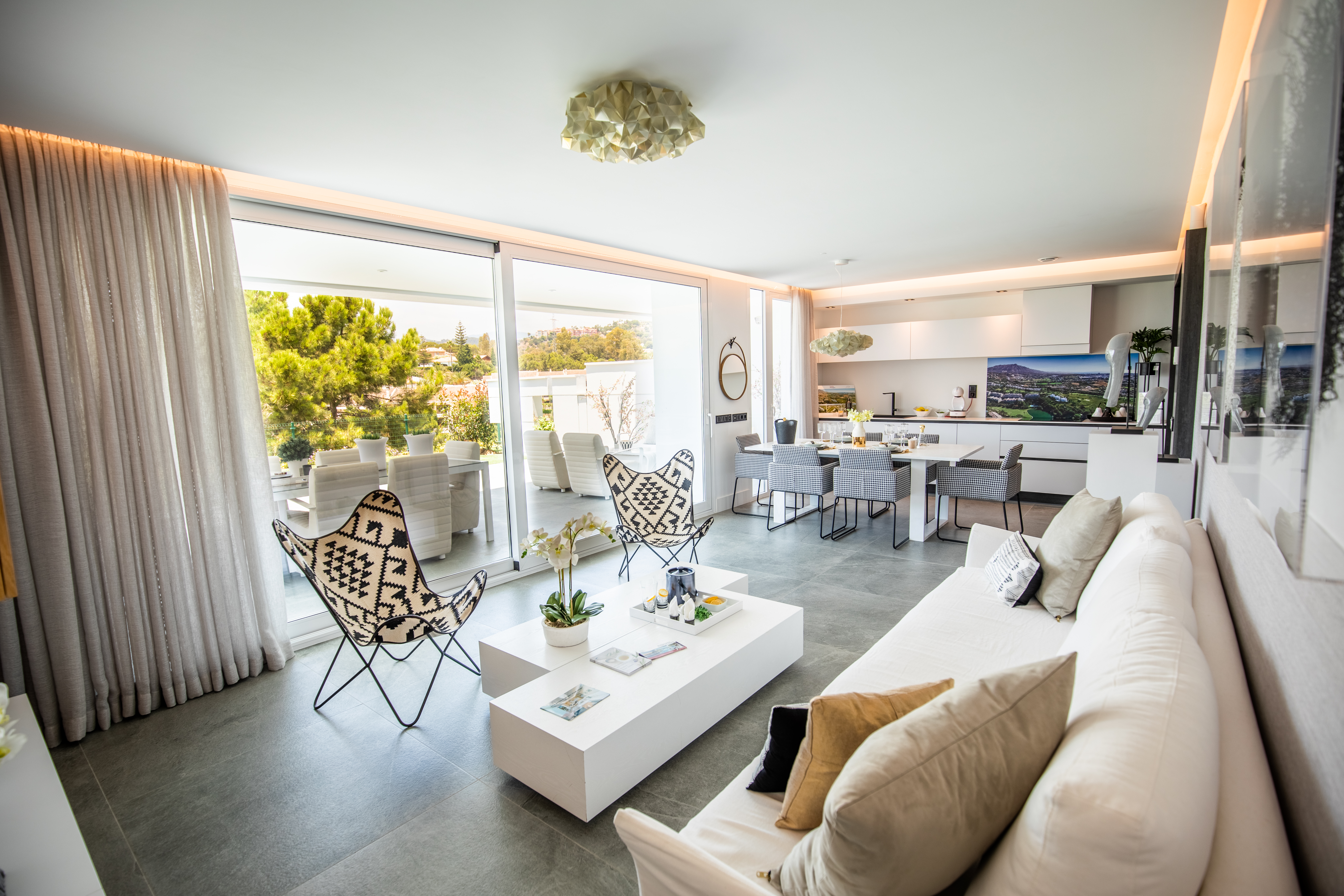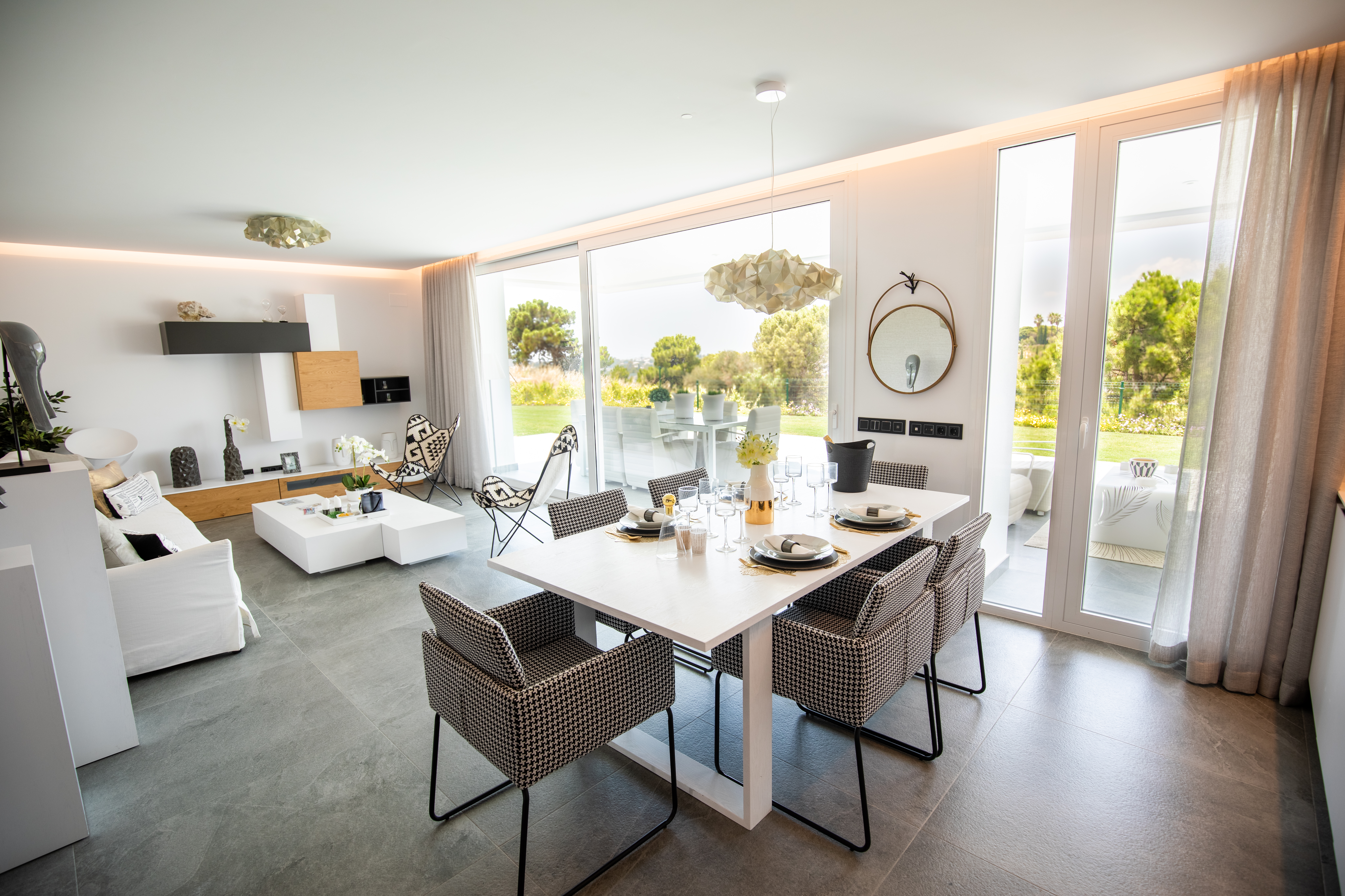 Spacious ground floor homes with gardens and duplex penthouses distributed over 3 elegant buildings with just 3 storeys, situated in a gated community with gardens and communal pool.
