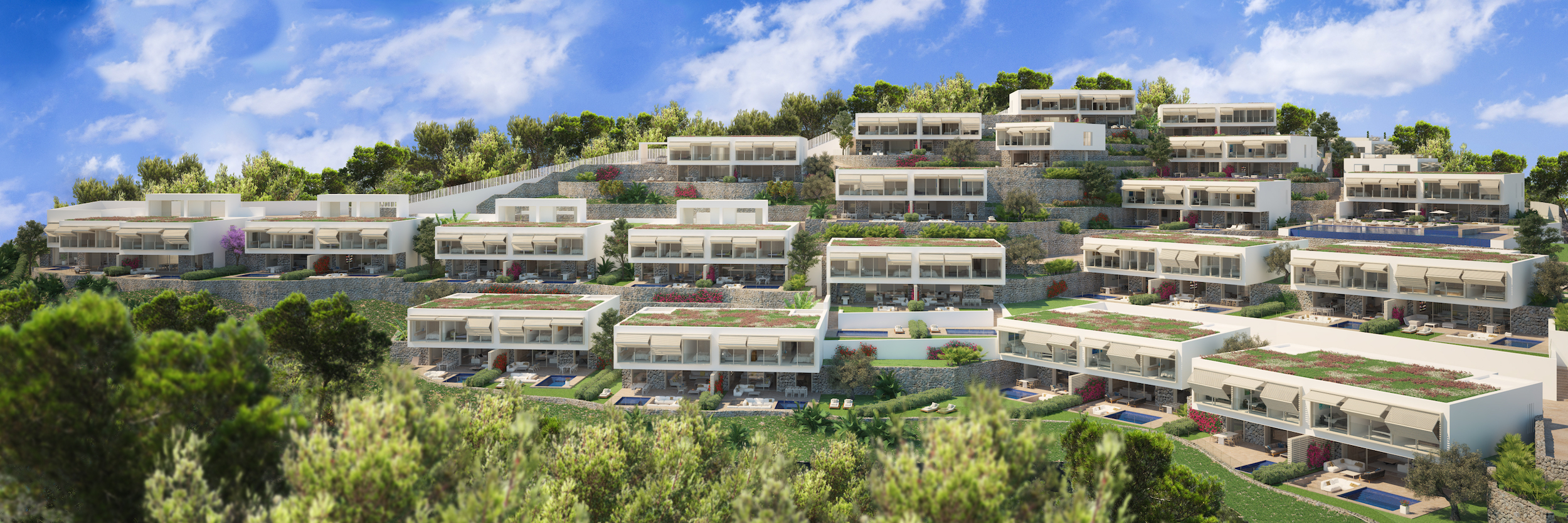 This new complex is located at the top of the fabulous Cala Llamp, located just 2km from Port d’Andratx, making it one of the most privileged locations in the Mediterranean.