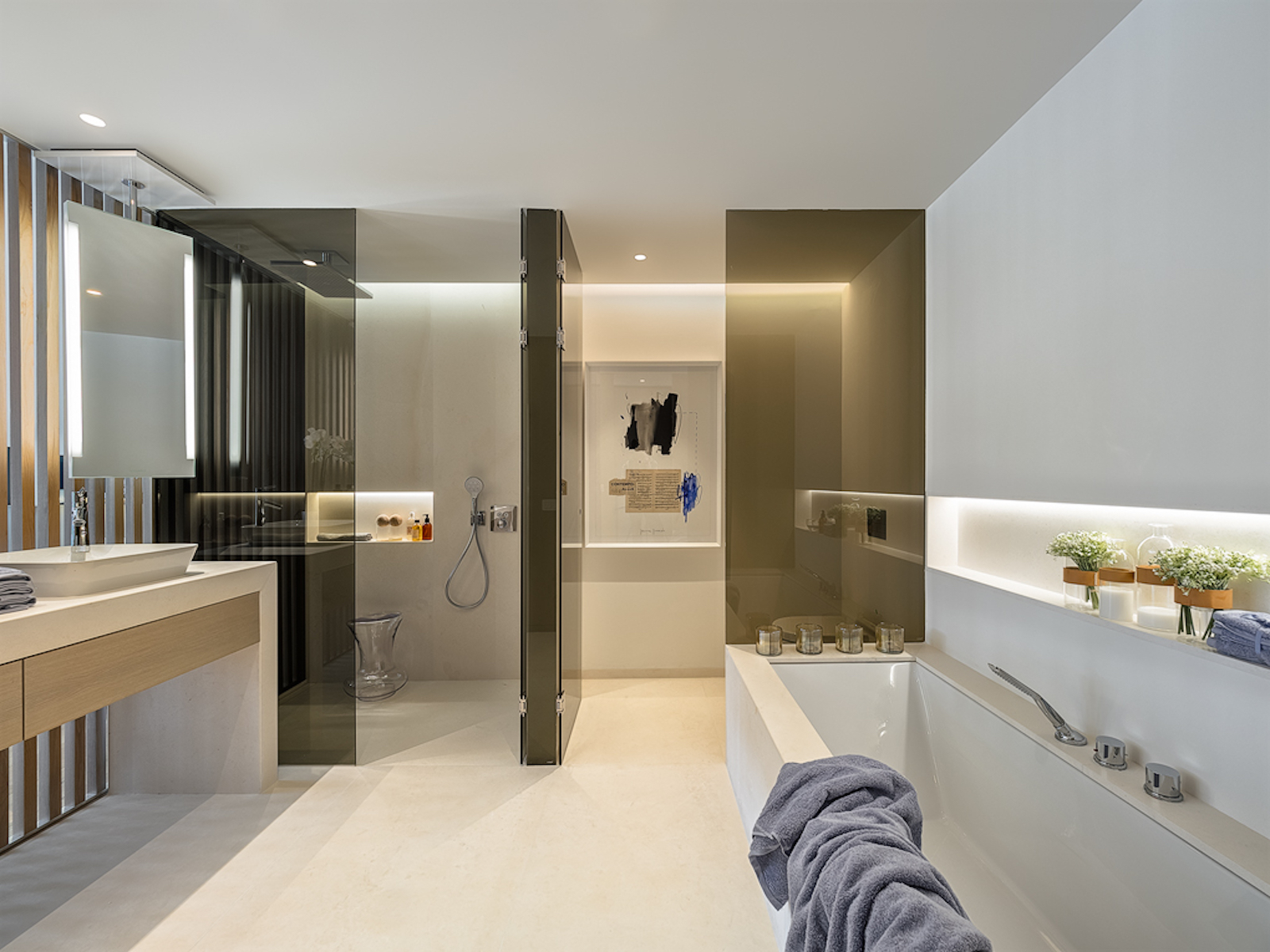Each house has three bedrooms, some with an additional family room, three bathrooms and one or two guest toilets, and a kitchen fully equipped with topquality electrical appliances. As well as an under floor heating system and air conditioning, the rooms are equipped with dressing rooms and/or fitted wardrobes, which bring both class and comfort.
