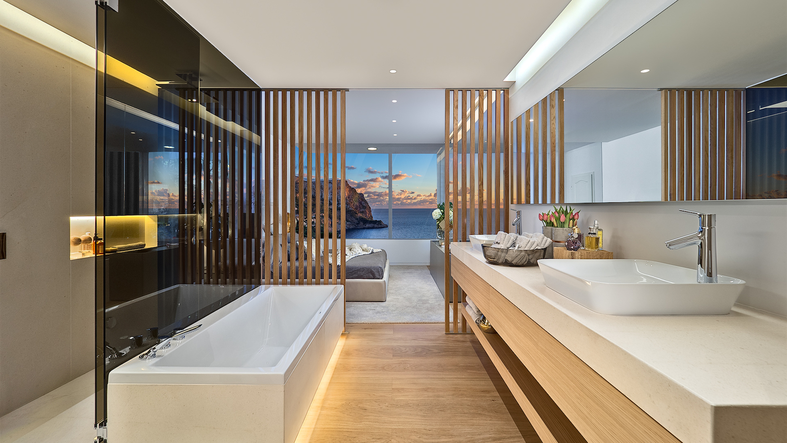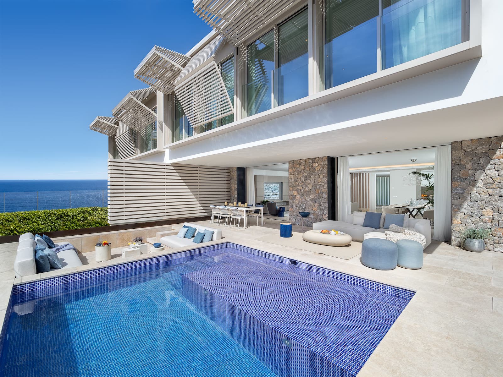 Each home at this complex is large, with minimalist architecture and incredible sea views, and has been constructed according to a carefully designed plan. Large rooms shape a construction that is perfectly integrated into the surrounding natural environment, through the use of materials such as stone, wood and vegetative covers, which transform a house into a home, where exclusivity embraces a space of comfort, sophistication and luxury.