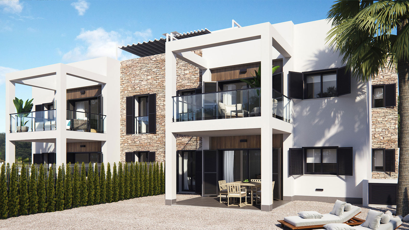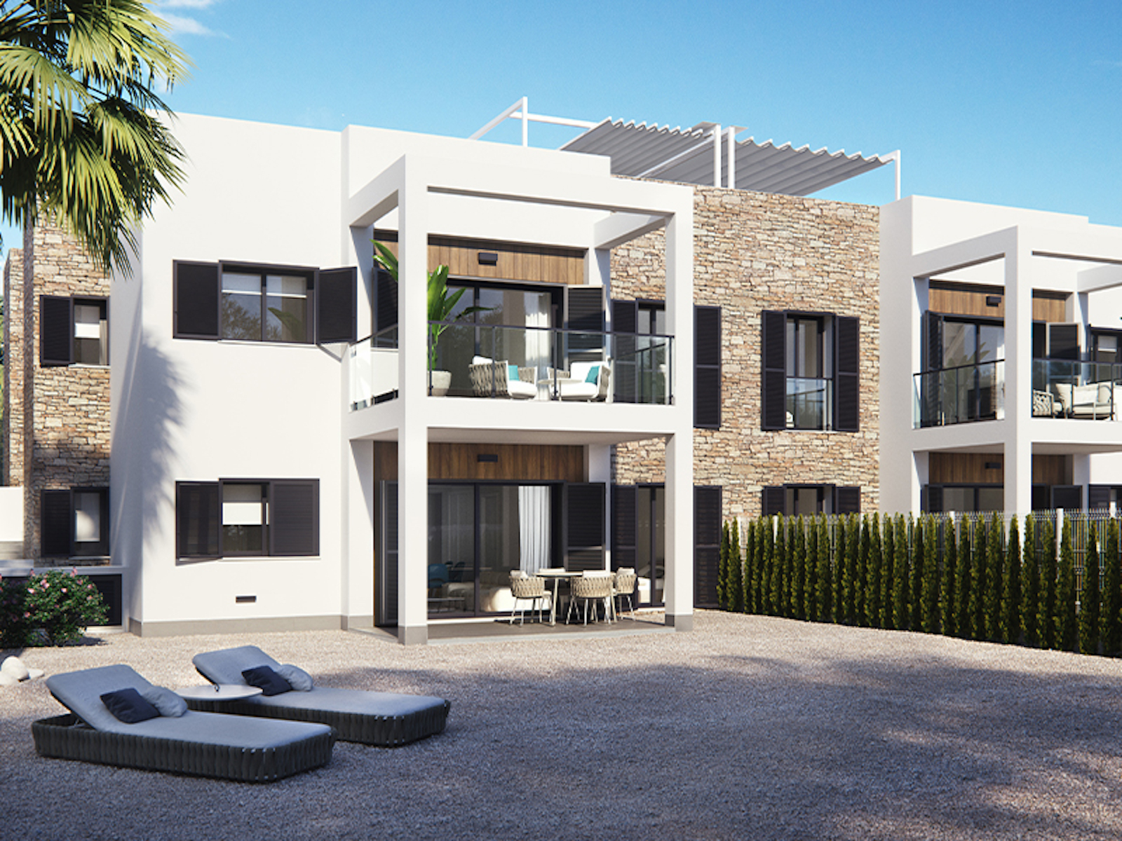 The development comprises 8 bungalows of 2 bedrooms and 2 bathrooms. Ground floor properties with terrace and large private garden in an area with 290 square meters. But, if you prefer enjoying a home with solarium, those might be the properties on the first floor, provided by a large terrace with more natural lightning and ventilation.