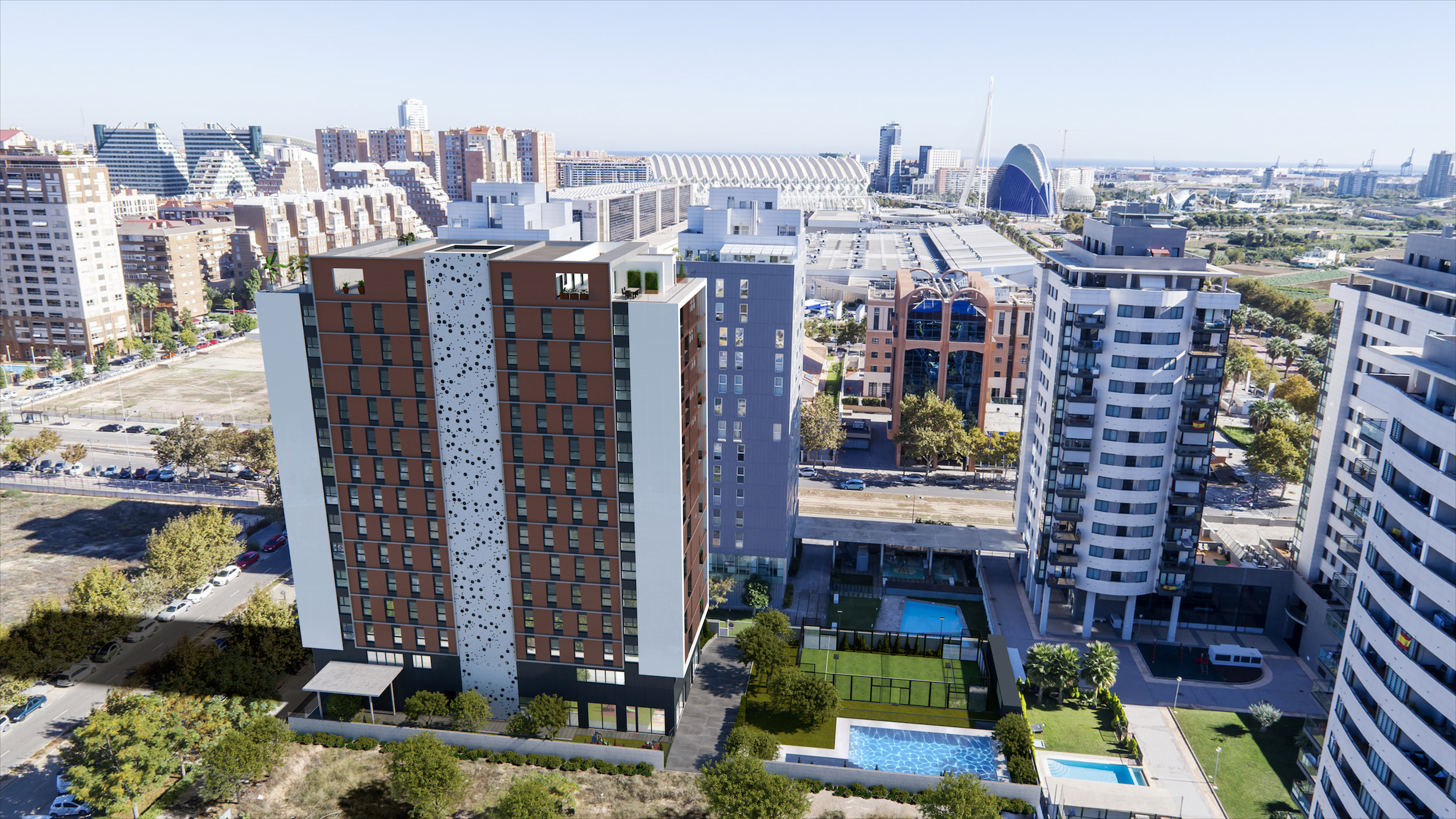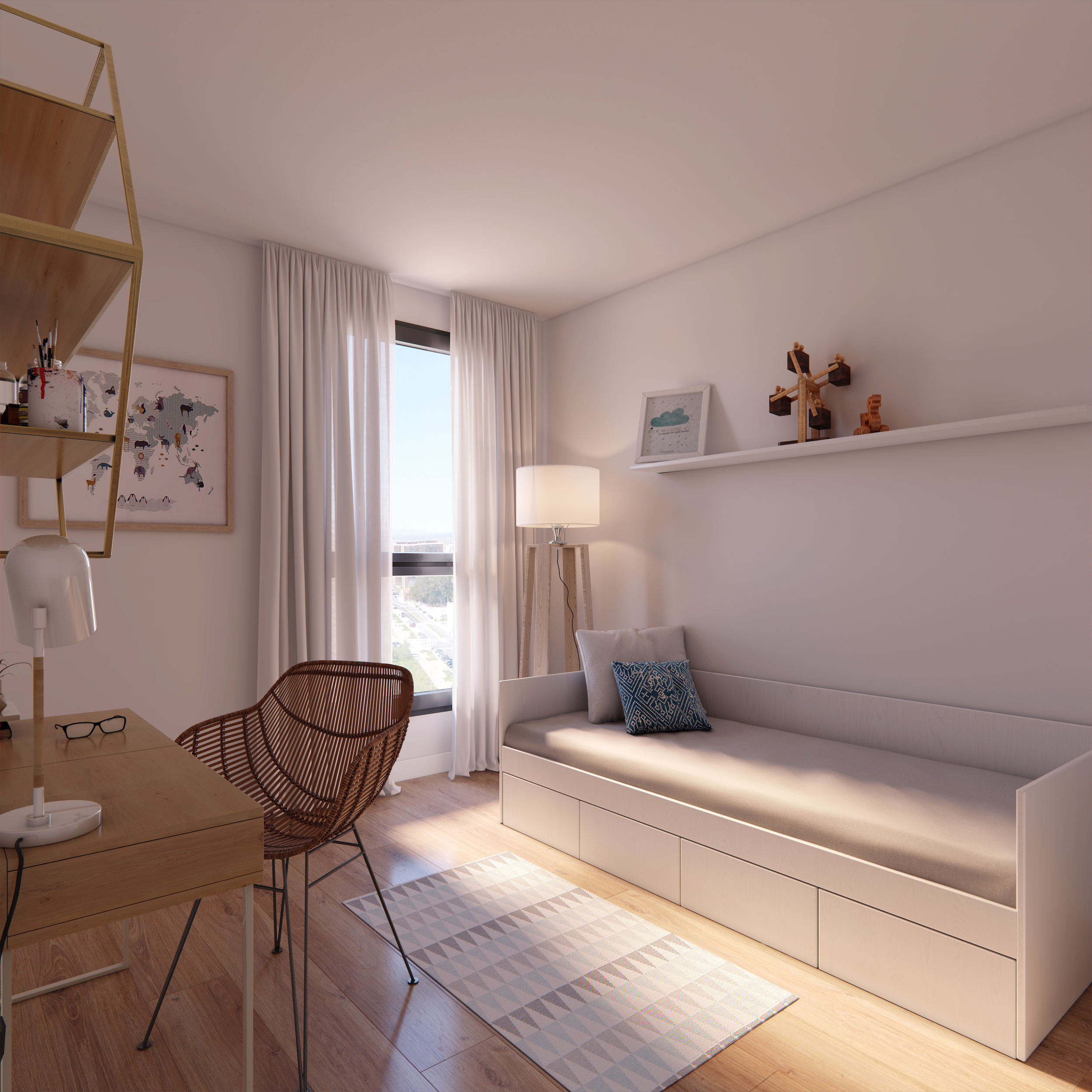 Imagine having the city at your feet and enjoy Valencia’s sunshine all year round. The development is in the district of Quatre Carreres, a peaceful area just minutes from the city centre. The area has large commercial and green areas and all the facilities you need to start a new life.