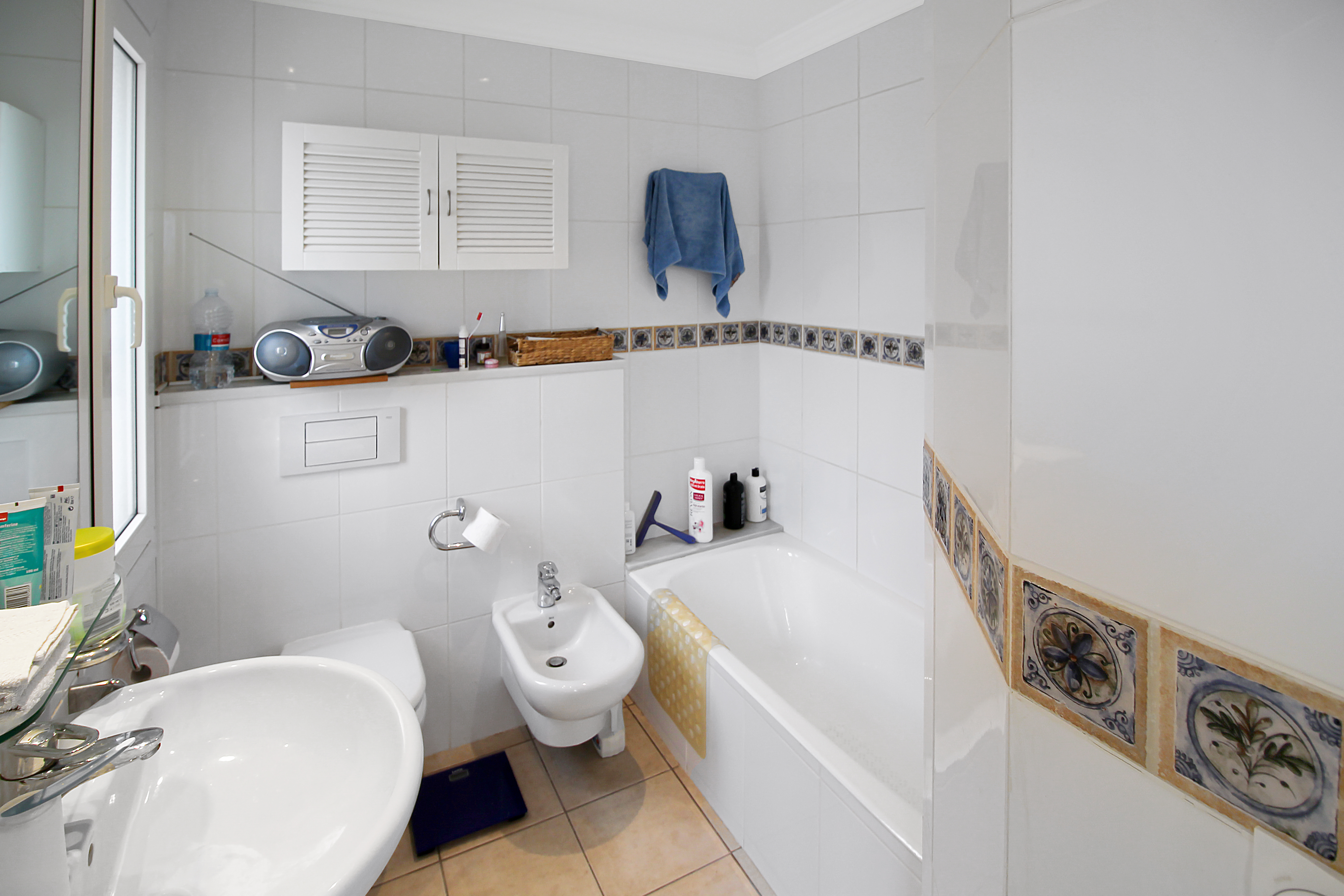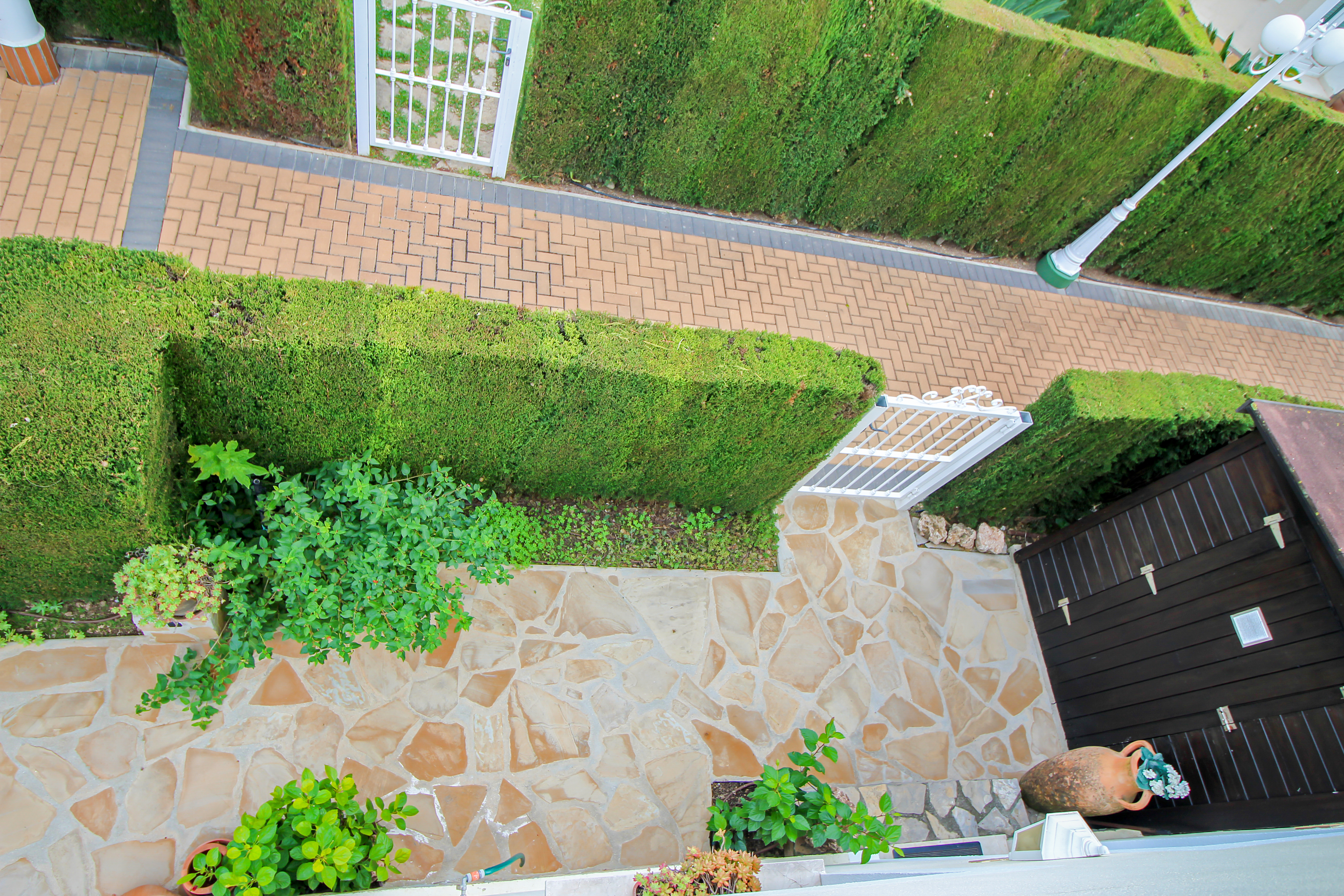 On a beautiful staircase we come up to the first floor containing the master bedroom and a large bathroom. From the bedroom there is direct access to a very useful solarium of 20 m2. From the balcony there is direct view of the mountains, the area and not least to the lovely pool area, which is 10 meters from the garden entrance.