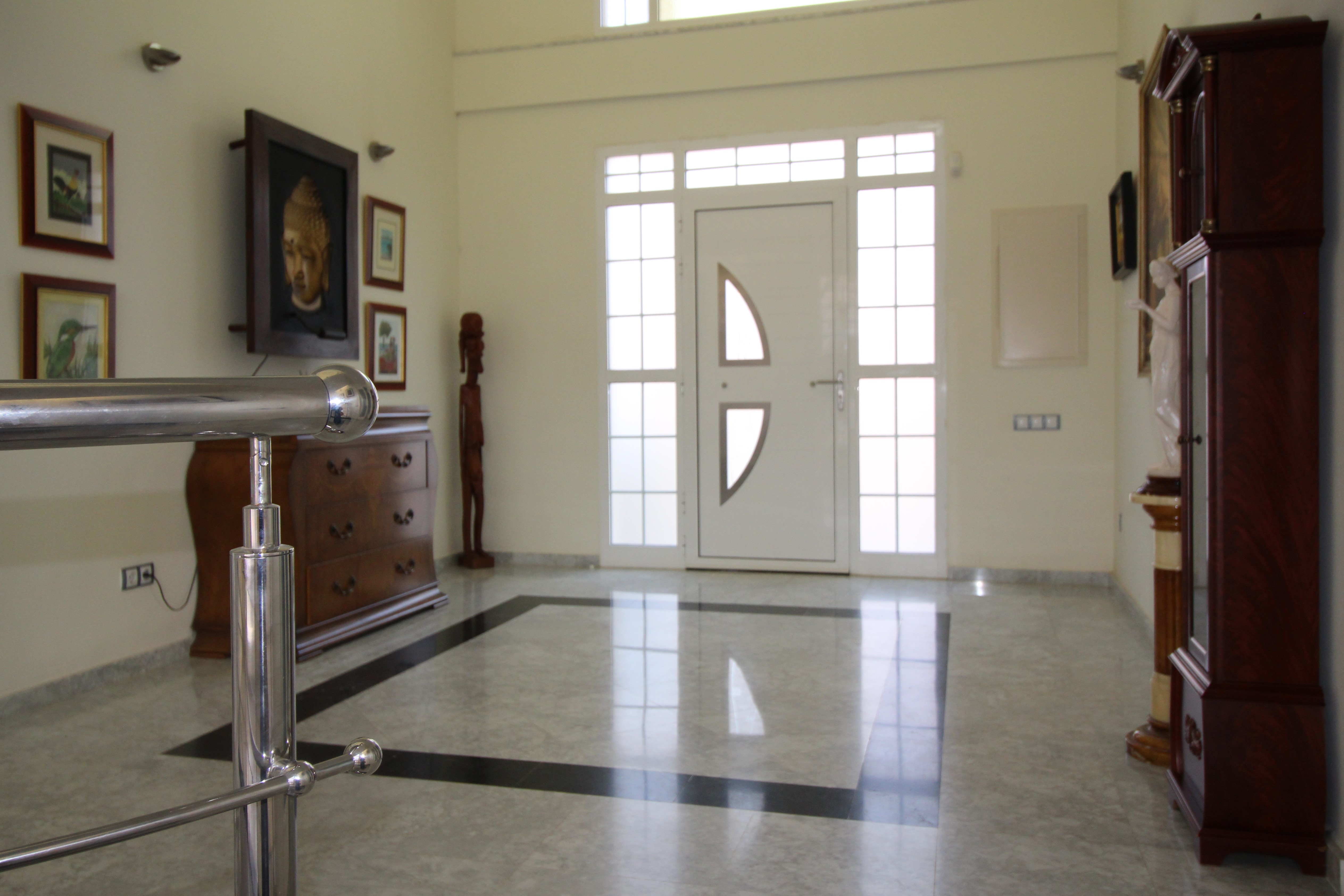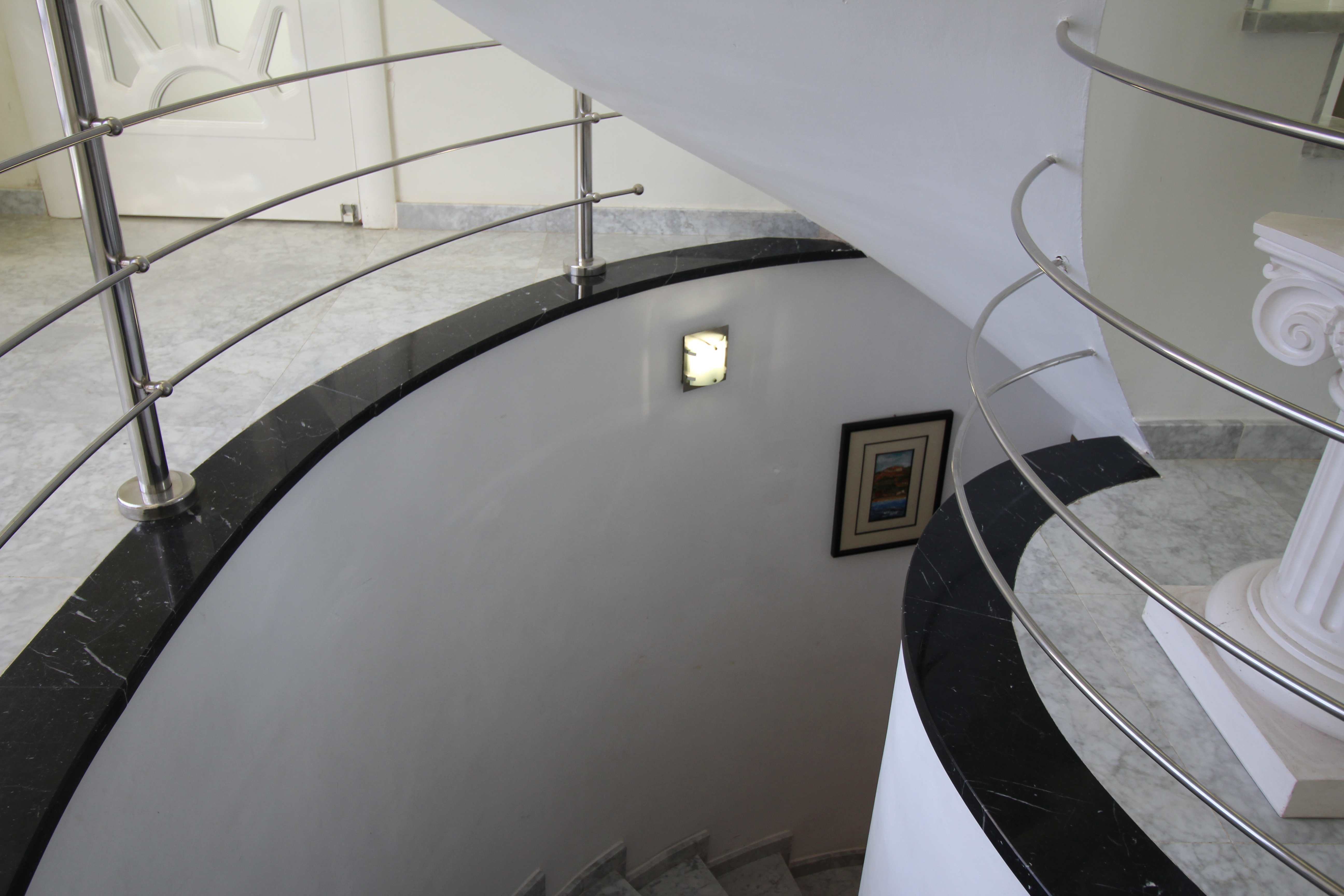 On the main floor, we have an elegant open Hall with high ceilings and a view up to the upper floor. On the main floor you find the living and dining room, a spacious kitchen. A bright and big bedroom with own bathroom and furthermore you will also find a courtesy toilet on the main floor.