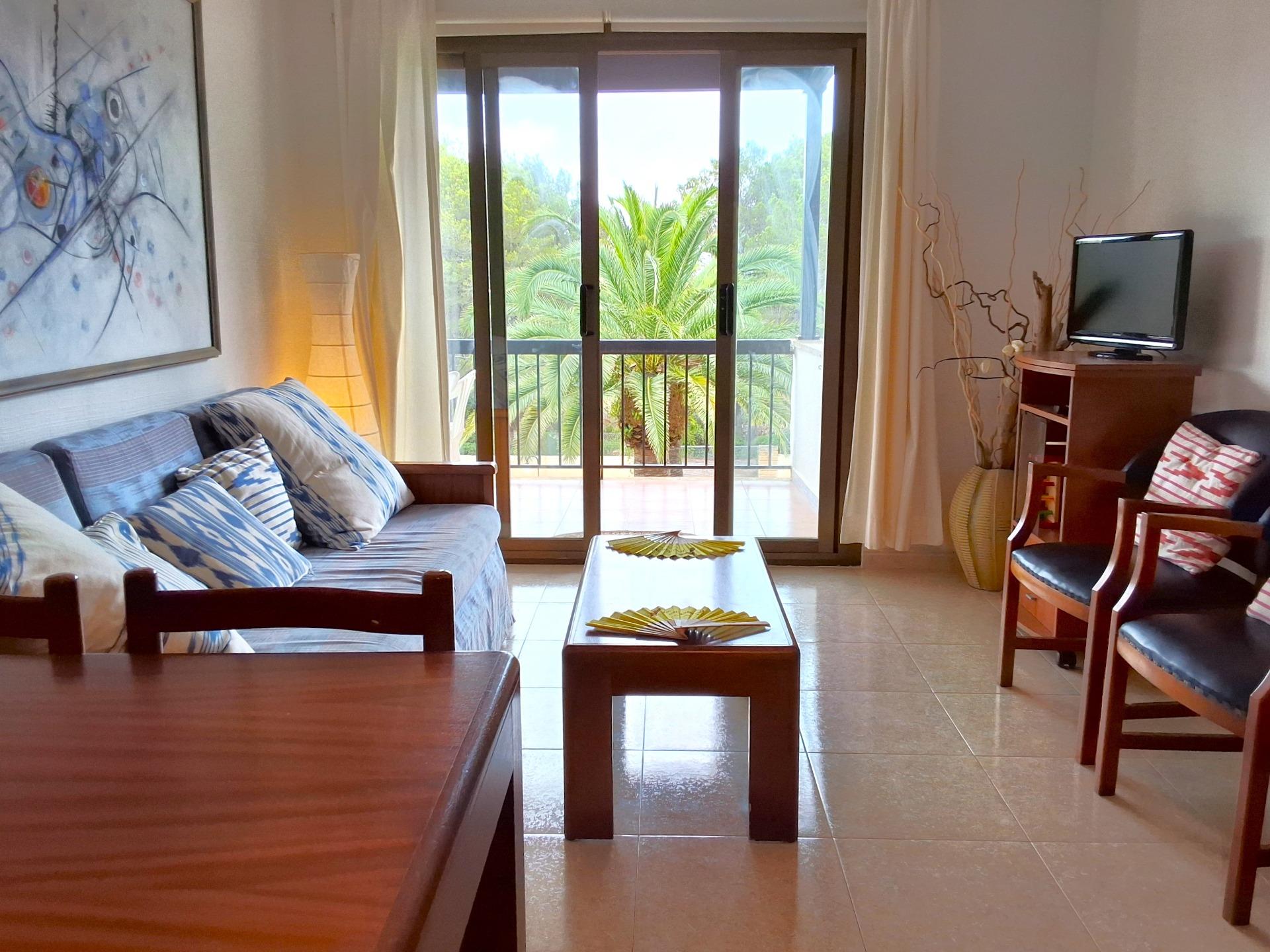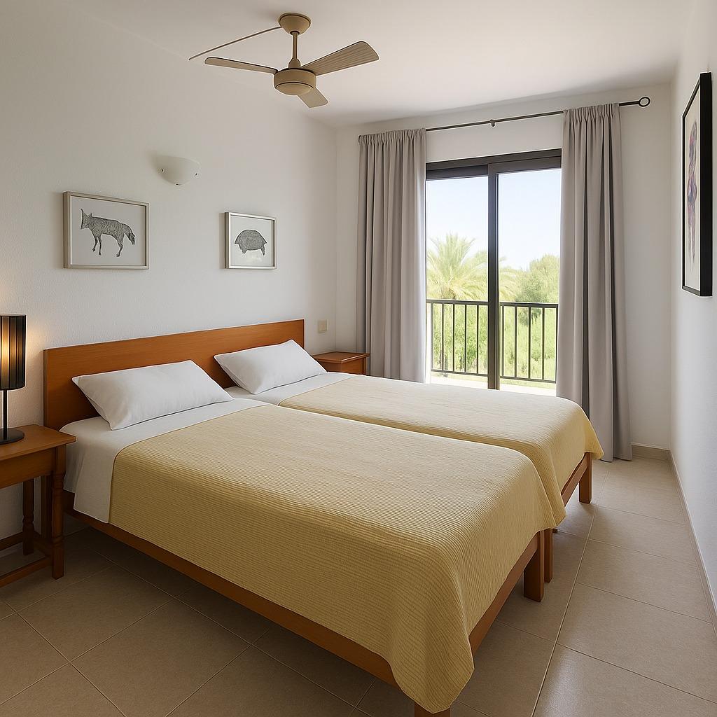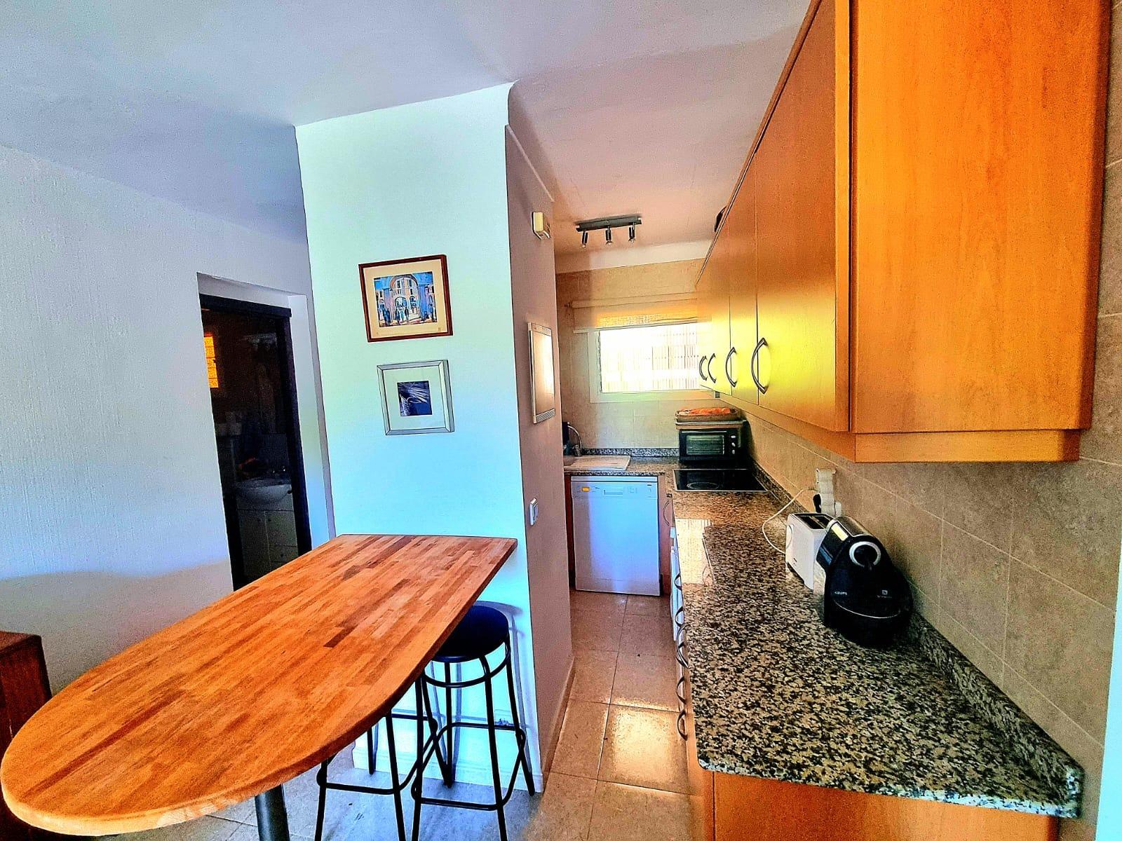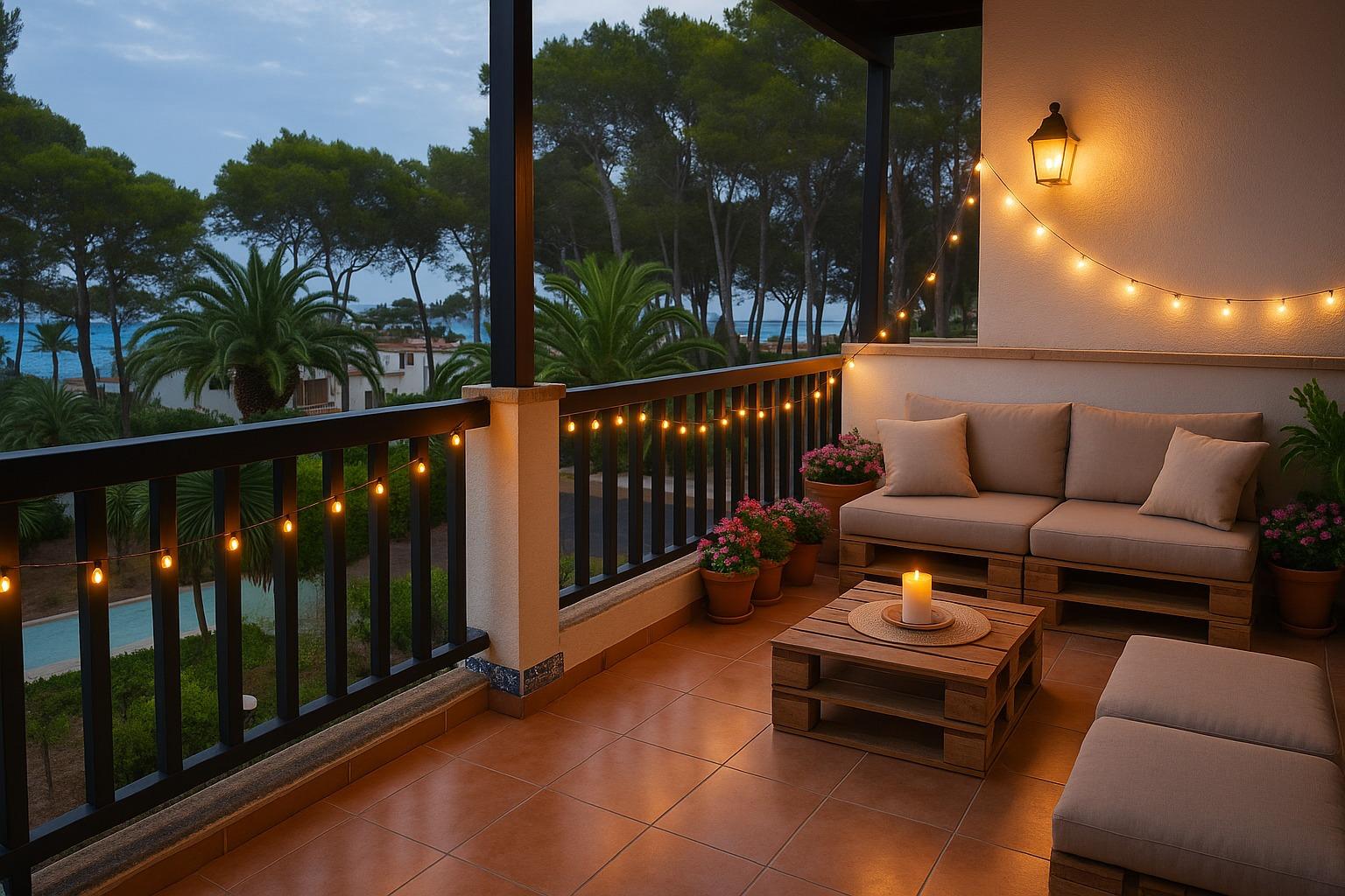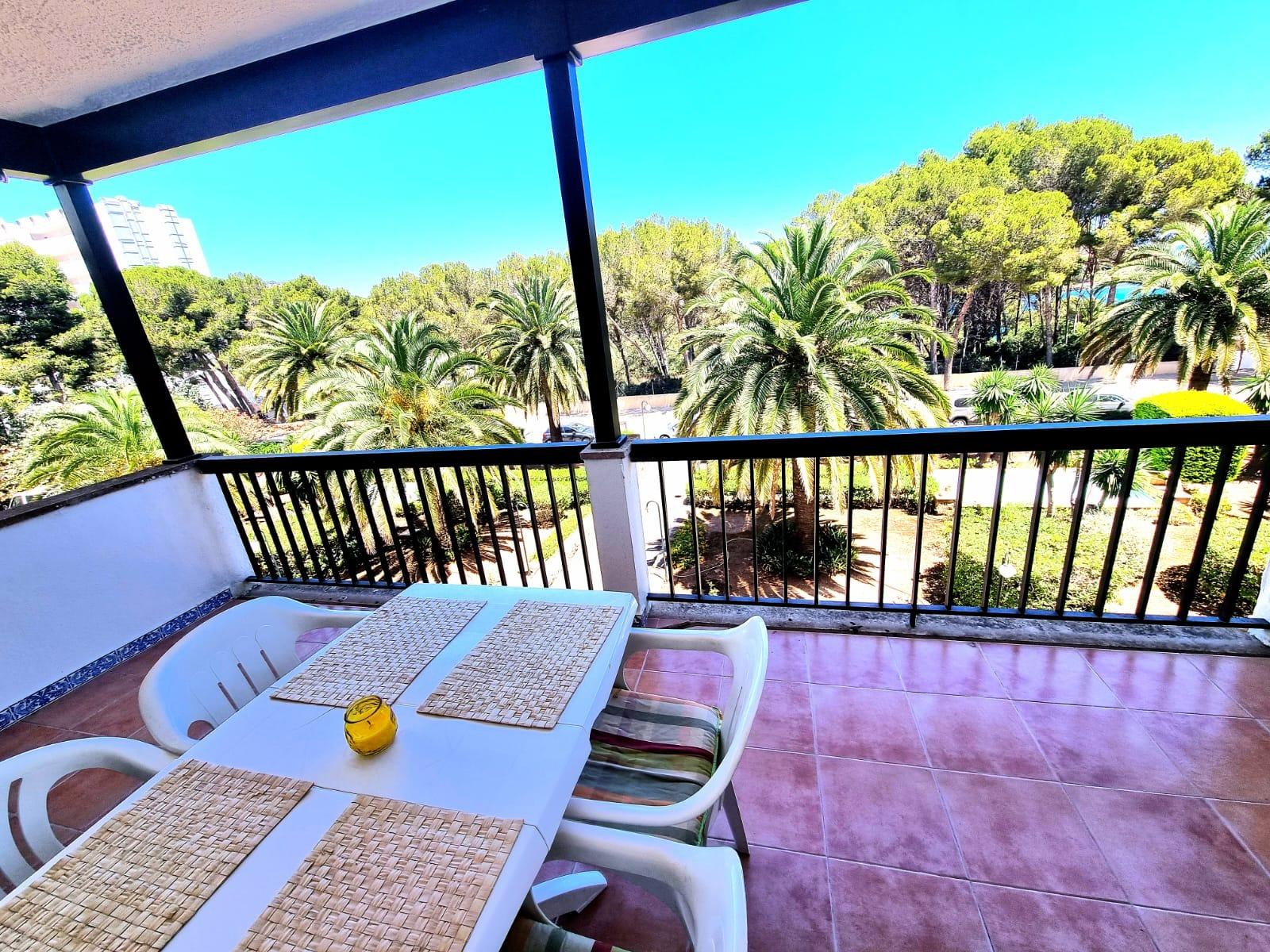 Exclusive apartment just 40 meters from the beach in Font de Sa Cala, Capdepera.. . Discover this charming apartment located in the sought-after area of Font de Sa Cala, Capdepera. A privileged setting that combines residential tranquillity with proximity to the sea – perfect as a permanent residence or for enjoying holiday stays.. This bright and welcoming apartment is situated on the second sea line, just steps from the beach, in a well-maintained residential building with elevator. The area is peaceful, exclusive, and very close to all amenities, ensuring comfort and an exceptional quality of life.. With a built area of 61 m2 (50 m2 usable), the property is south-facing, allowing for bright, warm, and functional living spaces throughout the day.. The highlight is the 11.42 m2 terrace with partial sea and garden views – ideal for creating a stylish chill-out area or enjoying breakfast with the family while taking in the Mediterranean breeze.. There are two spacious double bedrooms with built-in wardrobes and excellent ventilation: one with a garden view, the other with direct access to the terrace. The bright living-dining room also connects to the terrace through large aluminum sliding doors, blending indoor and outdoor living beautifully.. The open-plan kitchen is fully equipped with appliances and cabinetry and includes a breakfast bar, perfect for social cooking and modern living.. There are two complete bathrooms, both with walk-in showers. Hot water is provided by an electric boiler. Though there is no central heating, the excellent orientation ensures a pleasant temperature all year round.. The property is in good condition and ready to move in, though a light renovation could enhance its full potential. The original wood-framed windows and doors with fine glass add character and charm.. The building features exclusive outdoor parking for residents and the option to rent a covered parking space for added convenience.. Community fees: €2,000 per year.. The purchase and sale transaction of this property may be completed starting from March 2026.. This is a unique opportunity to live surrounded by peace, sea, and natural beauty in one of the most enchanting corners of northeast Mallorca – where each day begins with an inspiring view.. Some images have been generated with AI to illustrate potential decor and highlight the property’s possibilities.. Important: Purchase taxes, notary, and registration costs are not included. As a construction company, we are also happy to advise you on renovation, expansion, or any project you may have in mind.