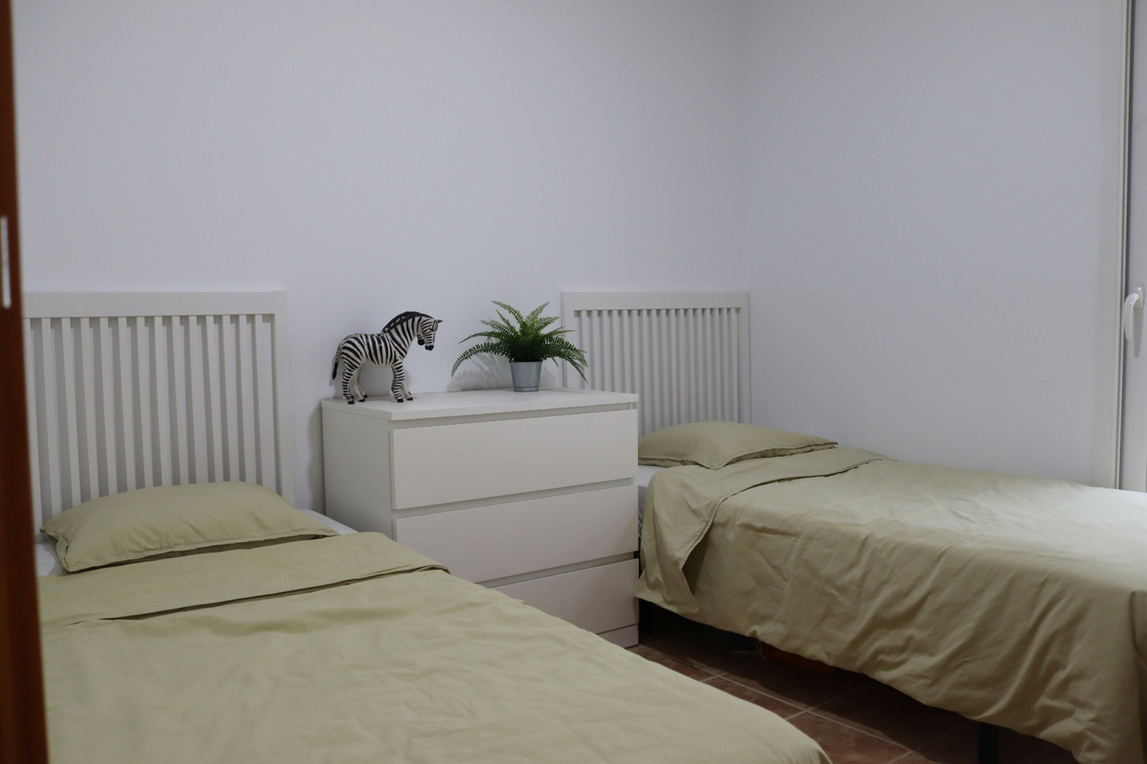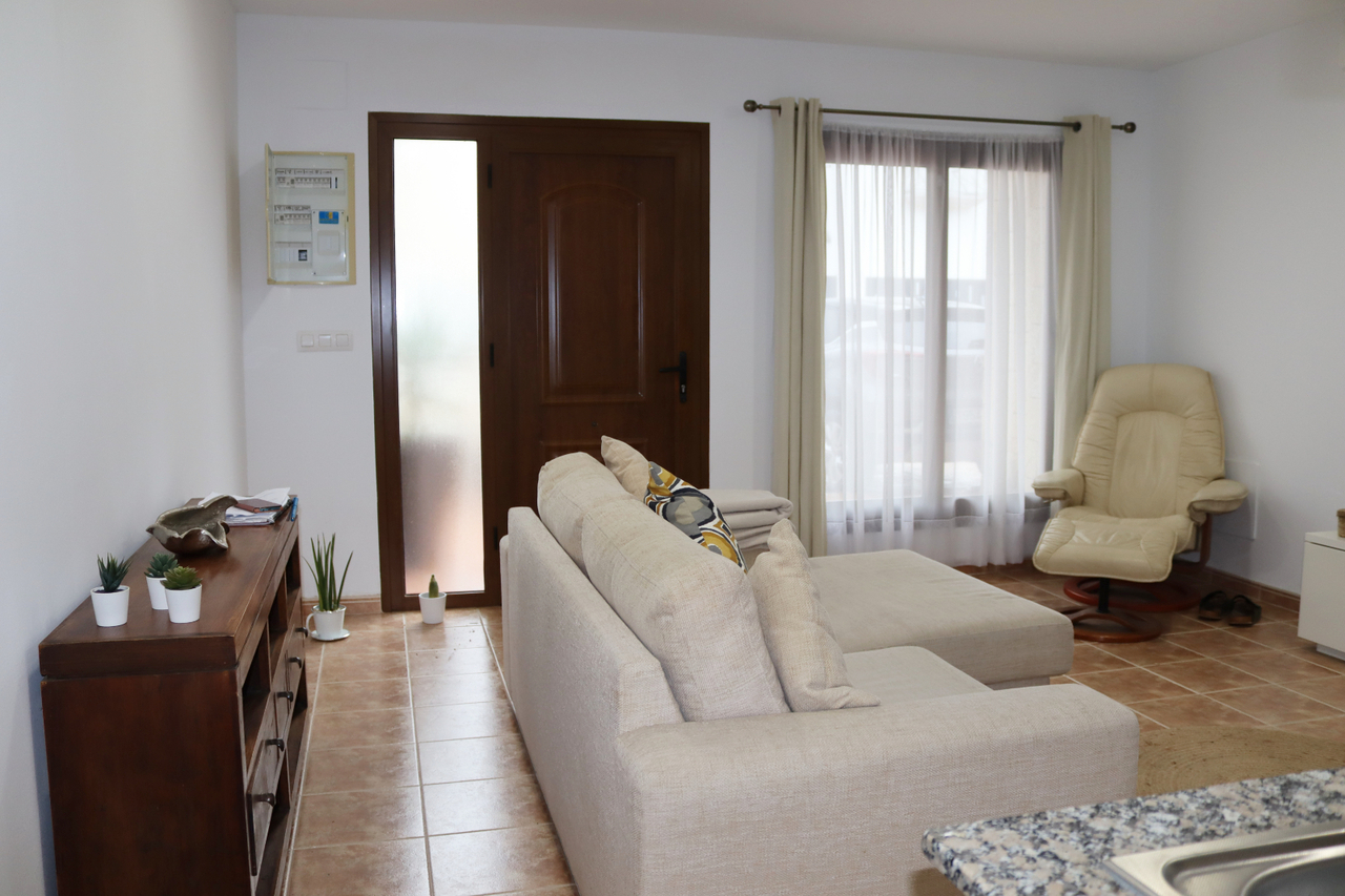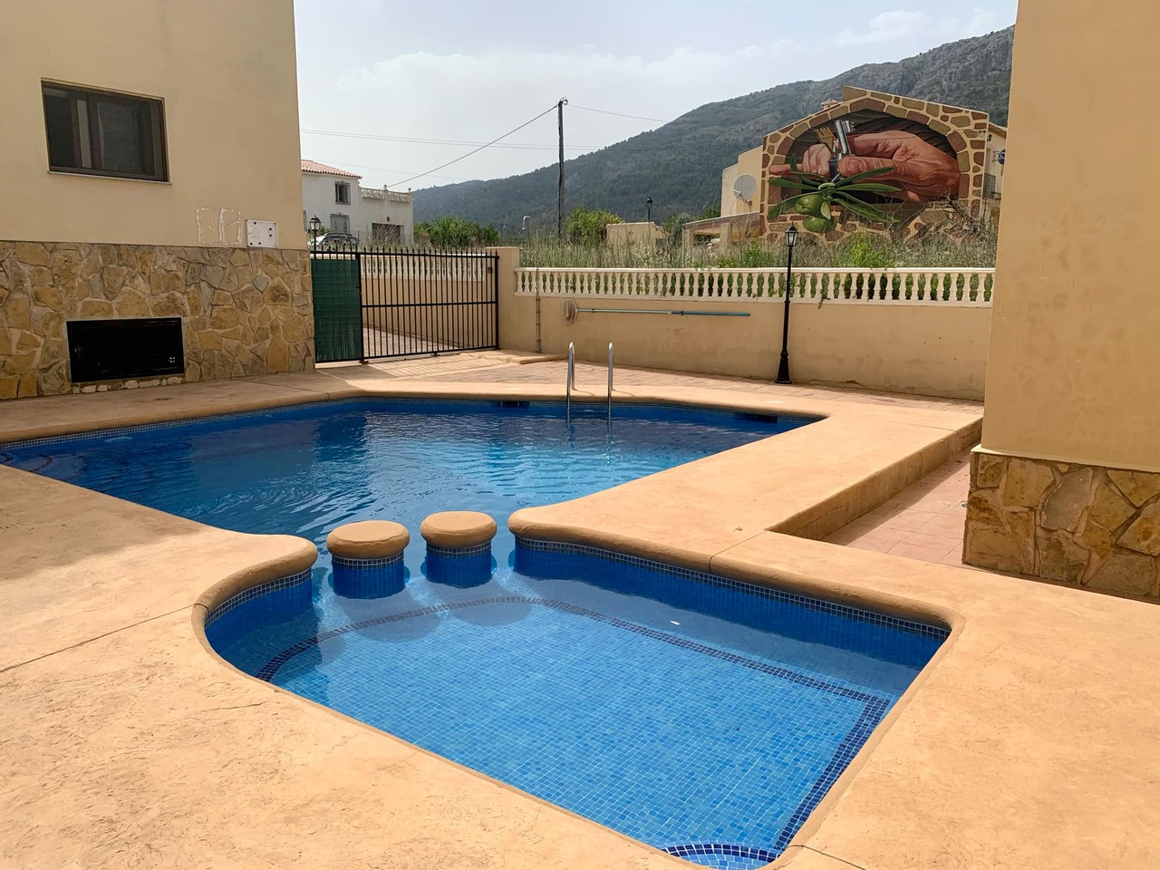 Long term or Seasonal rentalBenigembla - 2 Bedroom, 1 Bathroom Ground Floor Apartment with communal pool and private parking. The accommodation comprises:Open lounge with American style kitchen with H/C A/C Double bedroom 1 with built in wardrobes and sliding french doors opening to an inner private patio Double bedroom 2 with built in wardrobes and H/C A/C Family bathroom with bath with shower over, basin and WCThe property benefits from being on the ground floor with private parking space and small covered terrace to the front of the property with communal pool and mountain views from the terrace. The property is just a few minutes walk into the village with 3 bars with restaurants, bakery, pharmacy, medical surgery and village school. The larger towns of both Jalon and Orba are just a 10 minute drive away with a wider choice of bars and restaurants as well as larger supermarkets, independent local shops and bodegas and other services including builders merchants, banks etc.This property is available for long term rental or seasonal rental - 750€ pcm plus bills. Please contact us for further information.Please contact us for available datesPlease note this is a non smoking property and pets are not allowed.