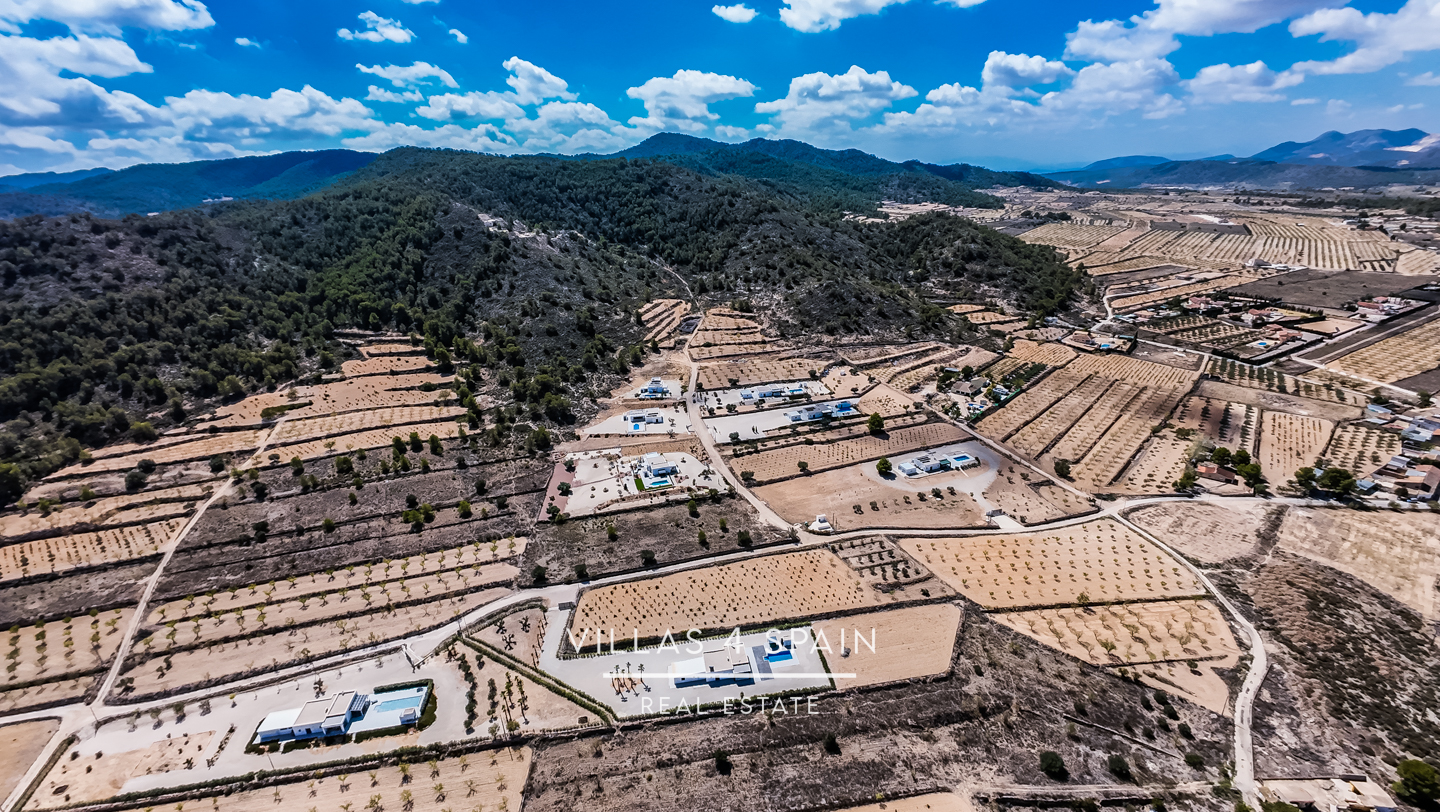 Dessa villor ligger nära Algueña och Pinoso och erbjuder den perfekta blandningen av lugn och bekvämlighet. Njut av en avslappnad lantlig livsstil omgiven av vackra landskap, perfekt för promenader, cykling och utomhusaktiviteter. Regionen är känd för sina vingårdar, olivlundar och mandelträd, som erbjuder pittoreska vyer och färska, lokala råvaror utanför dörren. För dem som älskar sport erbjuder området en mängd olika aktiviteter som vandring, mountainbike och till och med ridning. Du hittar också flera utmärkta restauranger och lokala barer i närheten, där du kan njuta av traditionell spansk mat, tillsammans med lokalt vin och tapas. Algueña och Pinoso är hem för charmiga veckomarknader, vilket ger dig chansen att utforska den lokala kulturen och köket. Trots den fridfulla lantliga miljön är villorna bekvämt belägna nära de viktigaste bekvämligheterna. Flygplatserna i Alicante och Murcia ligger bara en timme bort, vilket gör resan enkel och bekväm. Du är också inom en kort bilresa från stora köpcentrum, så att du kan njuta av det bästa av två världar – ett fridfullt boende på landet med enkel tillgång till stadslivet. Fly från liv och rörelse och omfamna en avslappnad, stressfri livsstil i denna fantastiska villa på landet - den perfekta tillflyktsorten för dem som söker komfort, lyx och lugn.