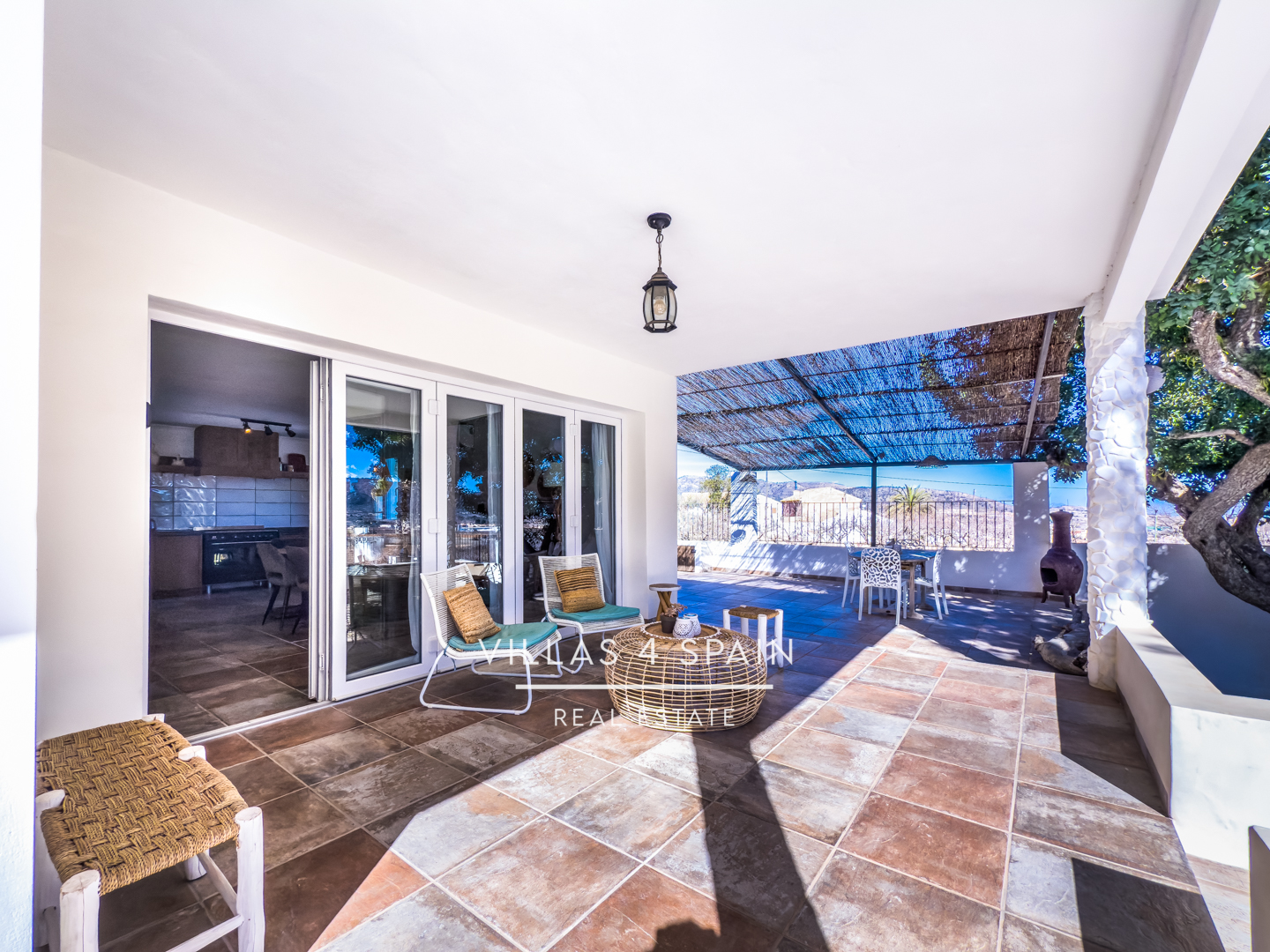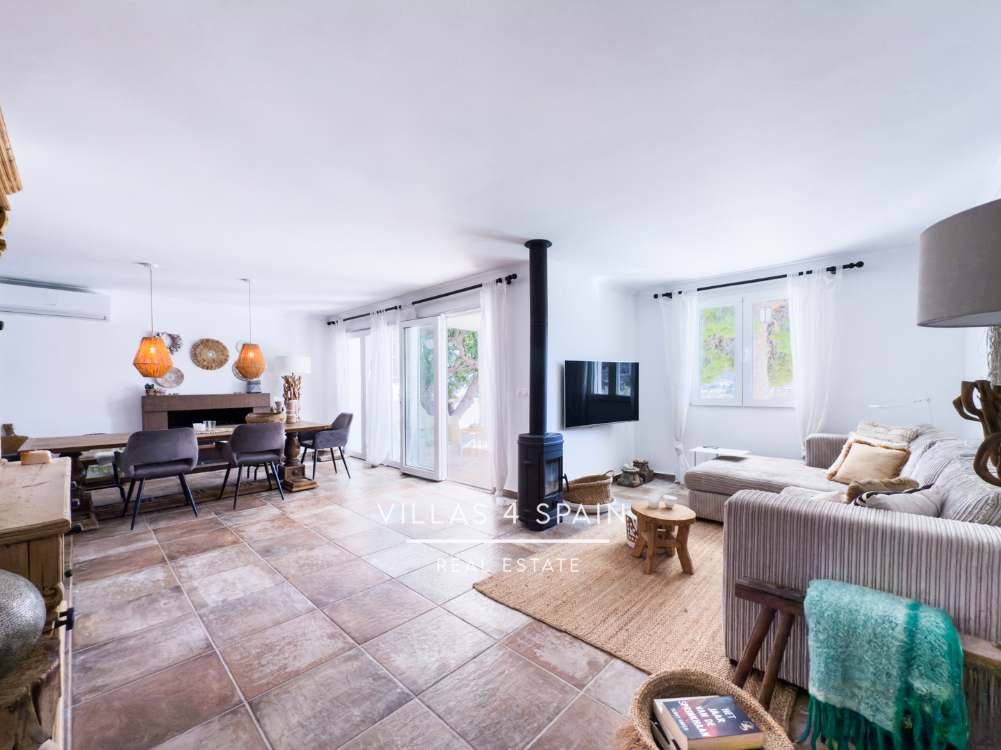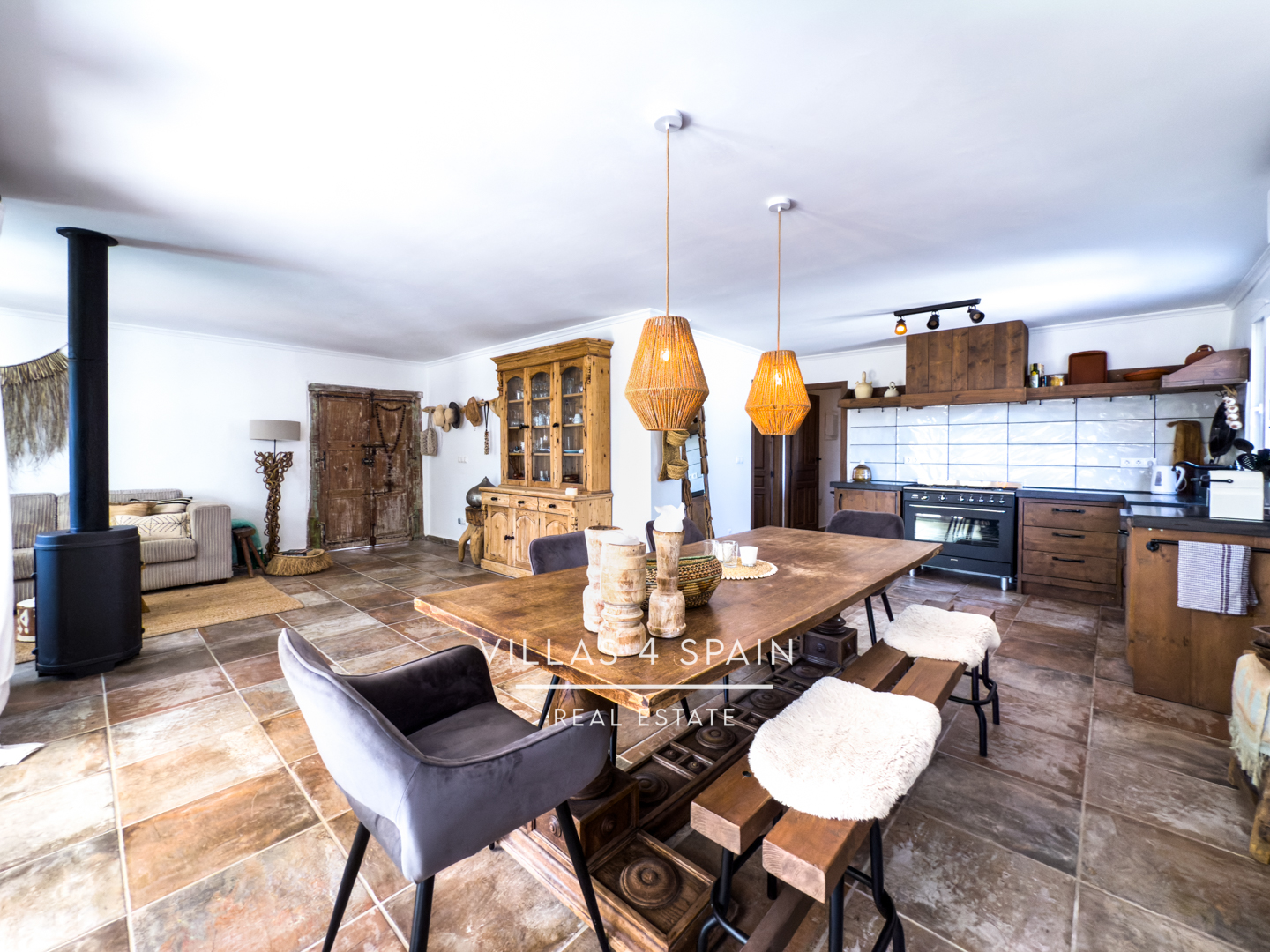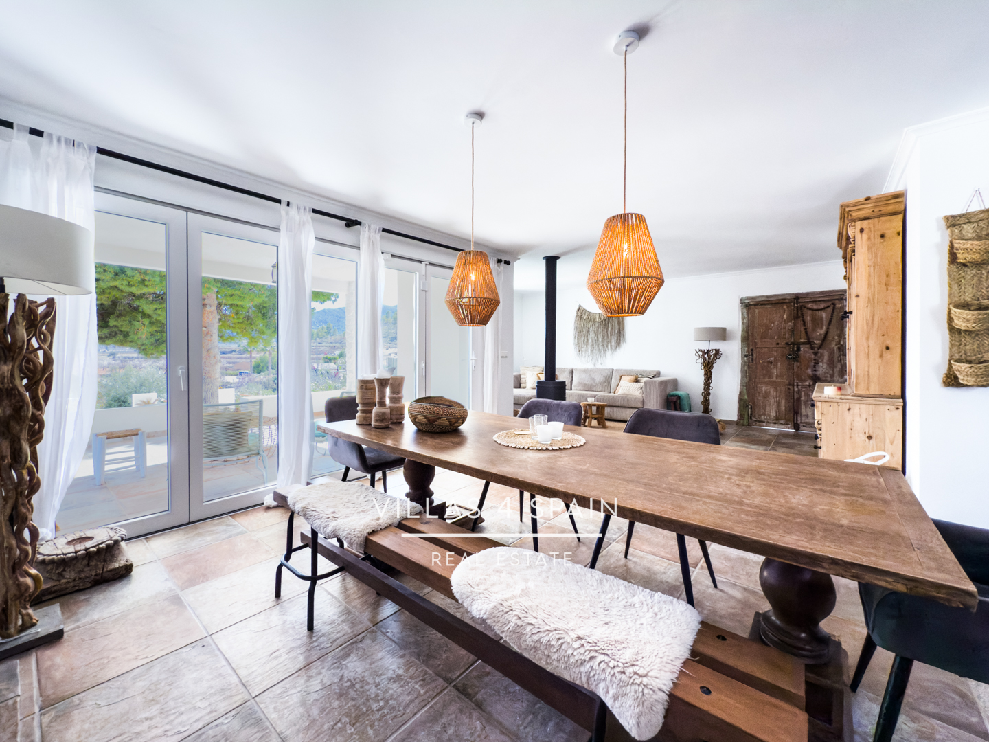 Ett mästerverk med 3/4 sovrum och 2 badrum, där sömlöst boende inomhus och utomhus väntar. Parkera vid den främre ingången och gå in i en lummig trädgårdsoas, komplett med en stor pool, solstolar och en inbjudande sittplats med fantastisk utsikt över bergen. Gå upp för trappan till villans stora entré. Altandörrar öppnas upp för att förena interiören med utomhus, avslöjar ett rymligt vardagsrum med en mysig vedspis. Flöda in i den expansiva matsalen och ett elegant, fullt utrustat kök med öppen planlösning, där modern design möter funktionalitet. Det stora sovrummet, med eget badrum, erbjuder en lugn oas, medan en hall leder till ett bruksutrymme, ytterligare två sovrum och ett gästtoalett. Ett andra vardagsrum – badat i naturligt ljus genom fler altandörrar – har ett eget kök med öppen planlösning och fungerar som ett potentiellt fjärde sovrum. Utanför är en charmig uteplats omgiven av oliv- och mandellundar, prickade med flera sittplatser för avkoppling.
