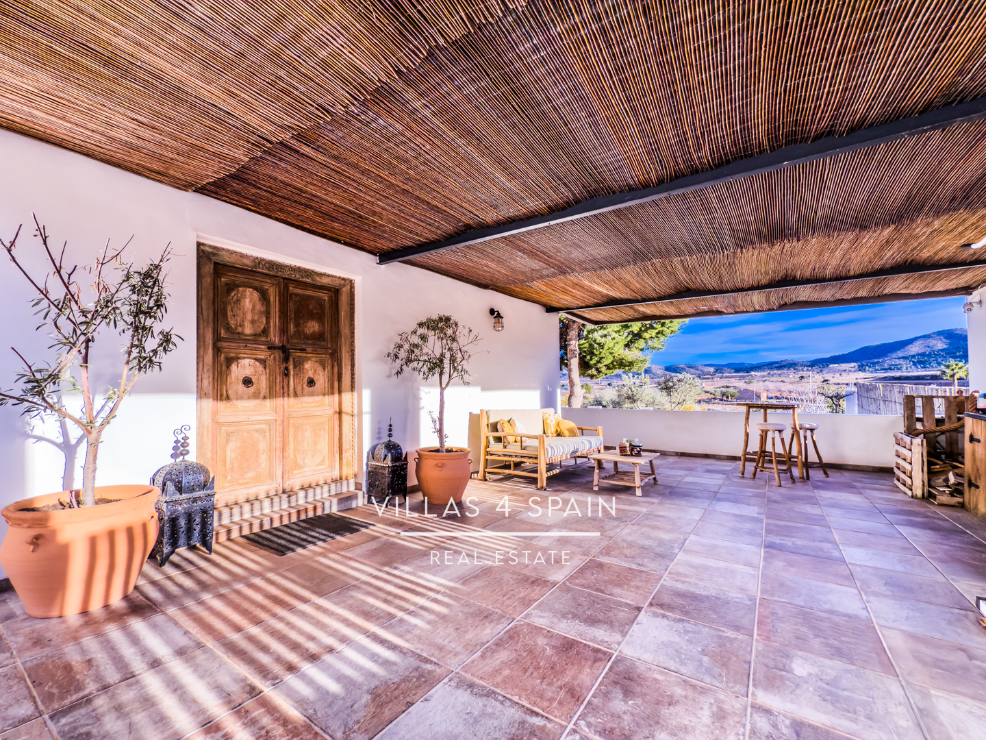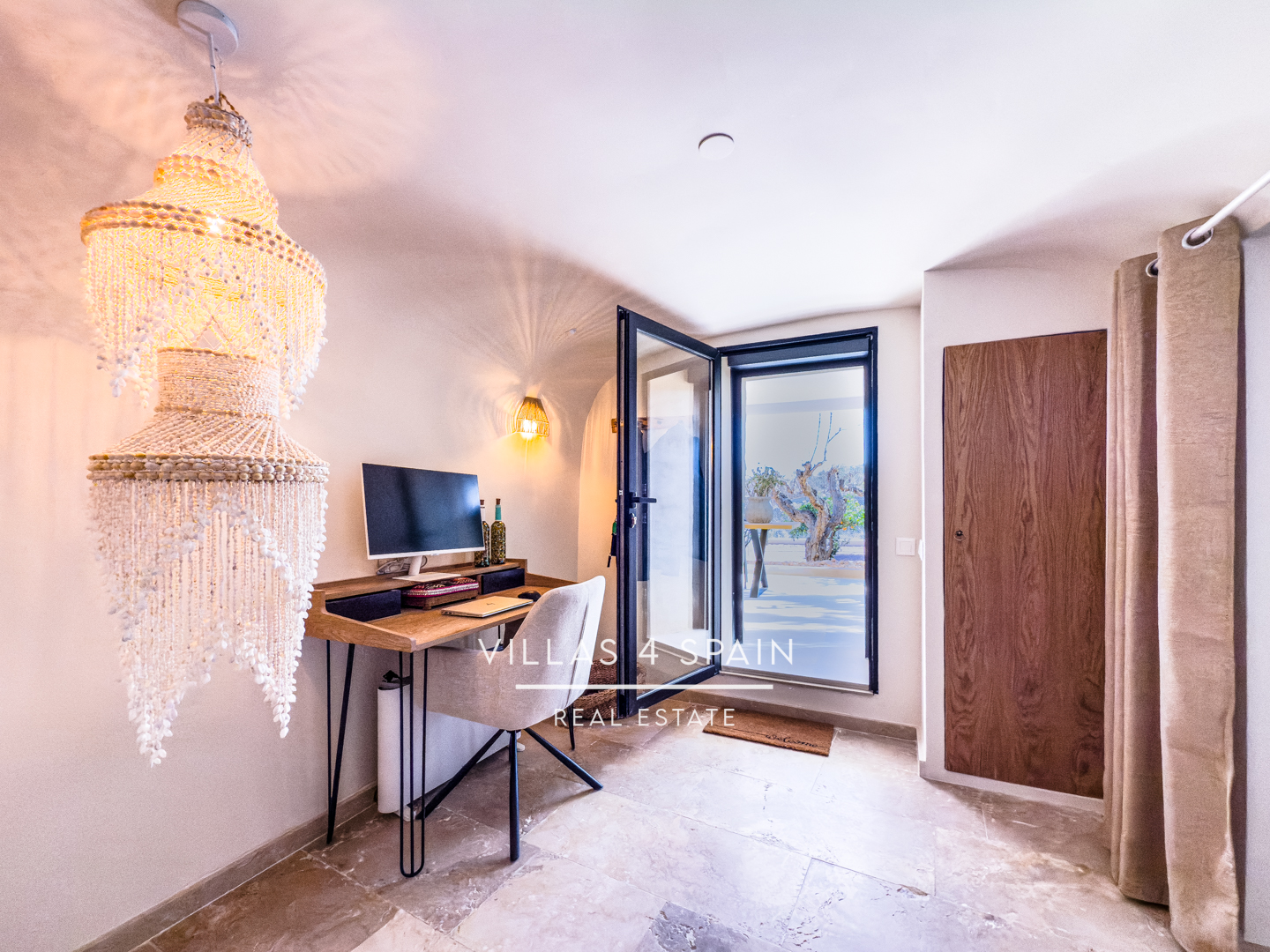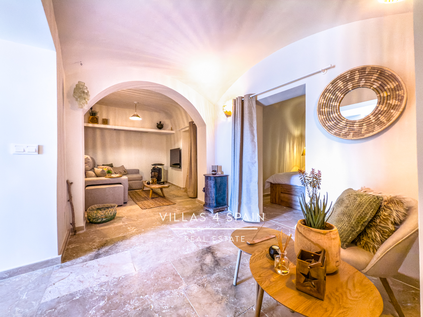 Nedanför ligger det extraordinära grotthuset med 4 sovrum och 2 badrum - ett arkitektoniskt underverk helt renoverat till perfektion. Tillgänglig via sin egen privata väg med gott om parkeringsplatser och ett rymligt garage, erbjuder detta boende en exklusiv fristad. En täckt terrass skapar förutsättningar för uteservering och avkoppling, med utsikt över en andra privat pool. Inuti har huvudgrottan tre sovrum, ett elegant badrum, ett generöst vardagsrum och en välkomnande kontorsyta vid entrén. En hall avslöjar en klädkammare och leder till en matsal, sömlöst ansluten till ett fullt utrustat kök och ett extra badrum med tillgång till garaget. Utanför erbjuder ett separat stort sovrum med eget badrum en mångsidig gästsvit eller privat tillflyktsort.