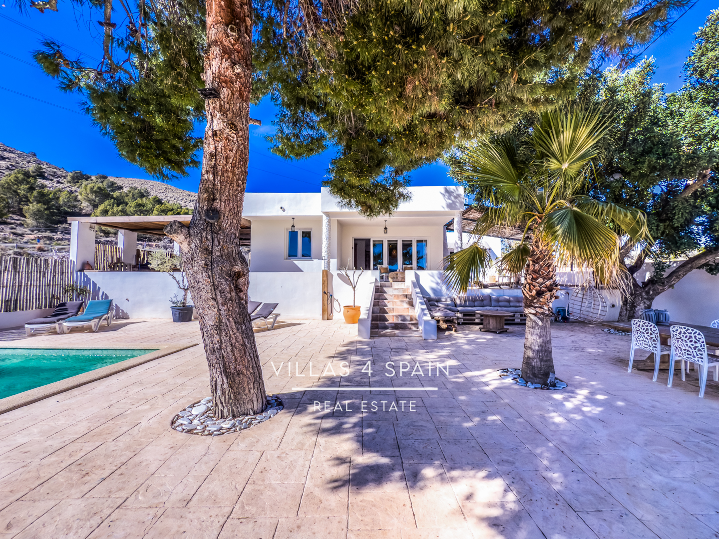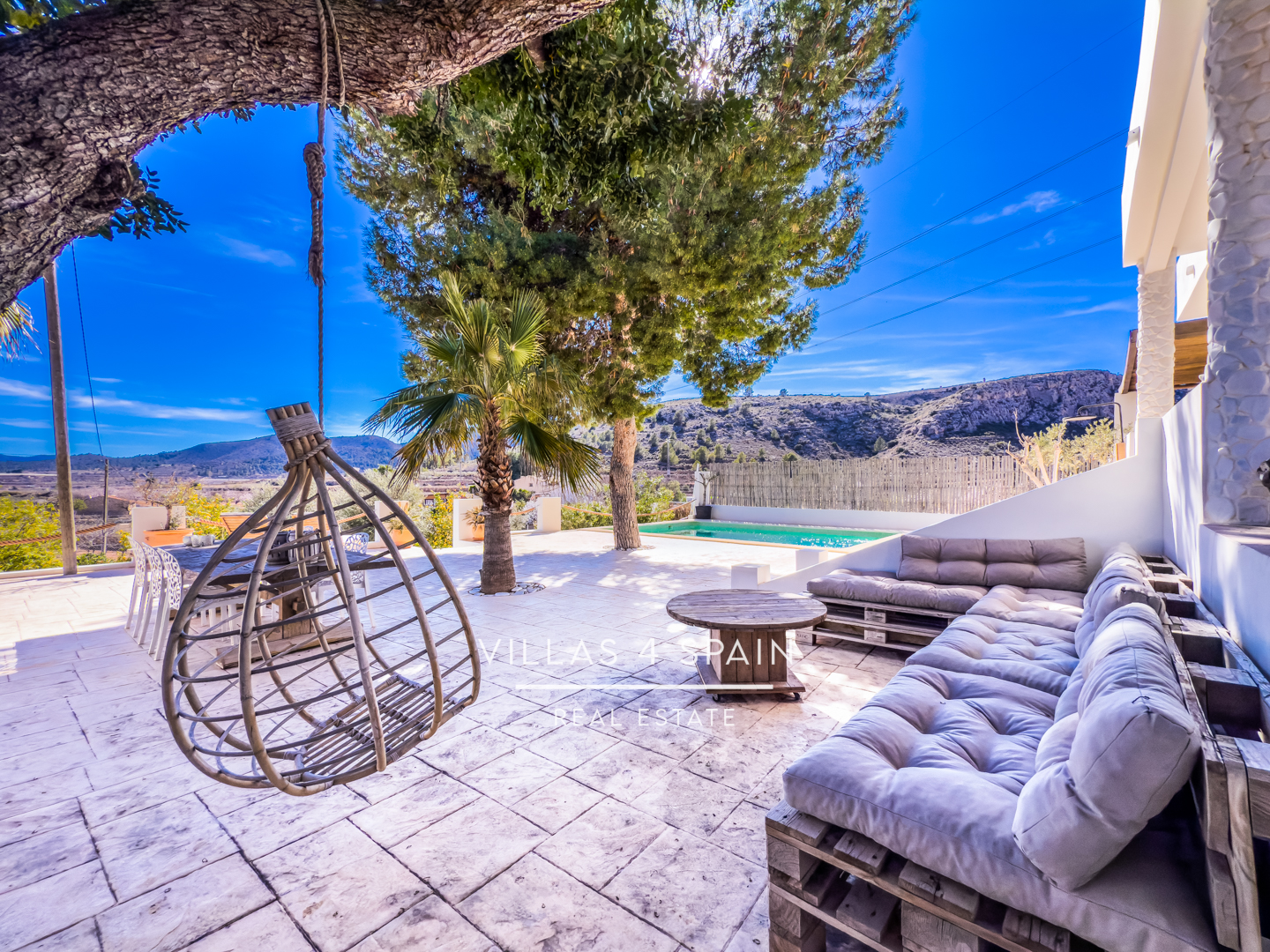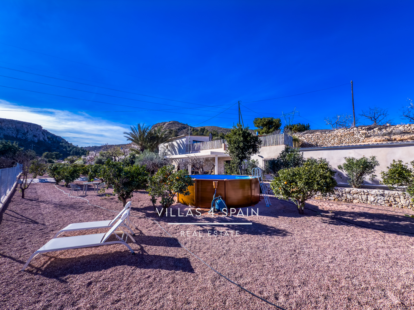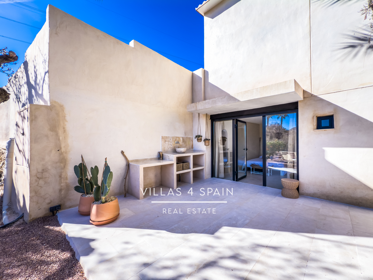 Nedanför ligger det extraordinära grotthuset med 4 sovrum och 2 badrum - ett arkitektoniskt underverk helt renoverat till perfektion. Tillgänglig via sin egen privata väg med gott om parkeringsplatser och ett rymligt garage, erbjuder detta boende en exklusiv fristad. En täckt terrass skapar förutsättningar för uteservering och avkoppling, med utsikt över en andra privat pool. Inuti har huvudgrottan tre sovrum, ett elegant badrum, ett generöst vardagsrum och en välkomnande kontorsyta vid entrén. En hall avslöjar en klädkammare och leder till en matsal, sömlöst ansluten till ett fullt utrustat kök och ett extra badrum med tillgång till garaget. Utanför erbjuder ett separat stort sovrum med eget badrum en mångsidig gästsvit eller privat tillflyktsort.