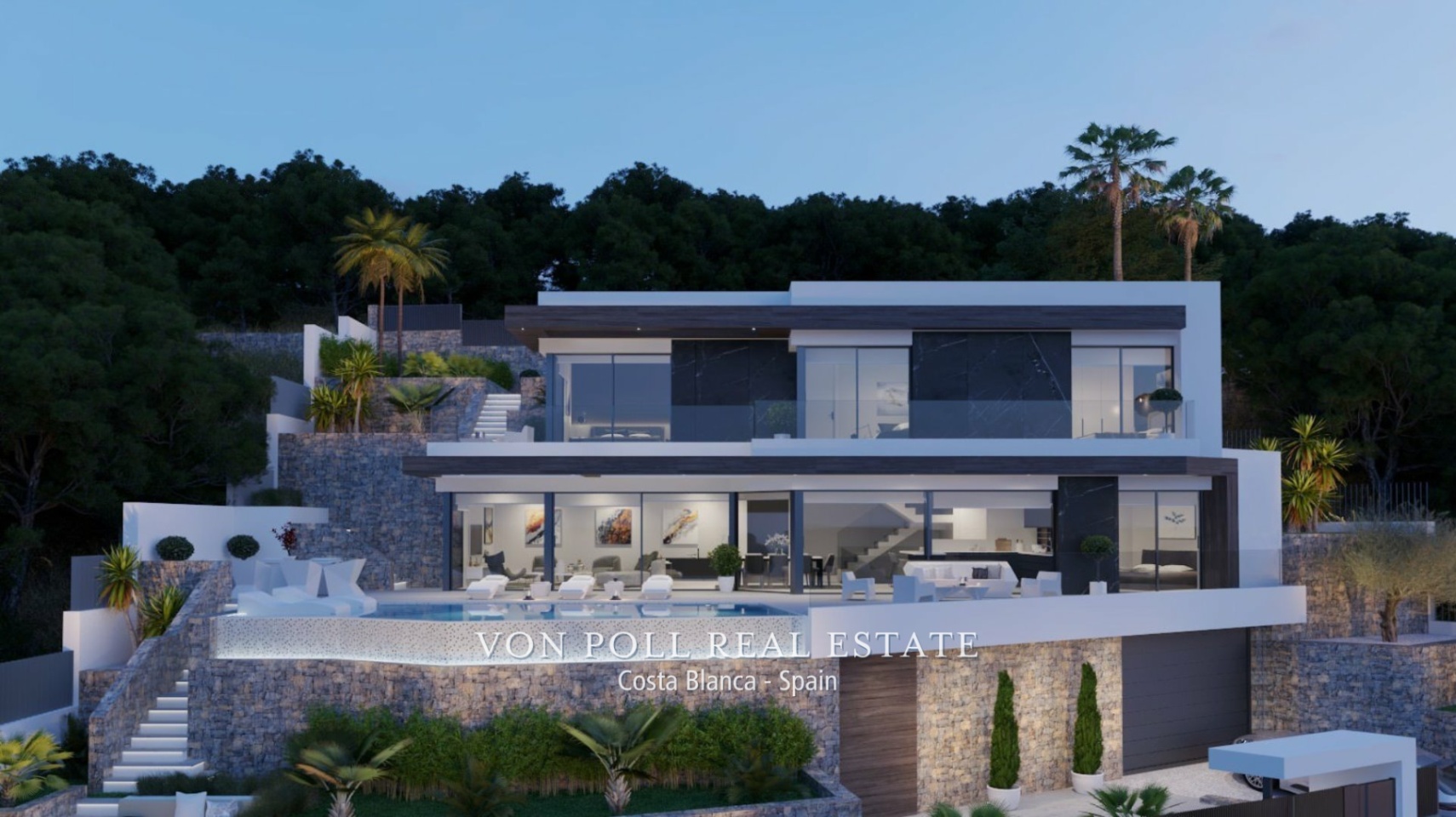 Karaktär: Ny lyxvilla i Calpe med fantastisk utsikt över havet, klippan och Calpebukten. Funktioner: Calpe är en av de mest attraktiva platserna på La Costa Blanca. Vackra stränder och utsökt medelhavsmat. Elegant villa med fantastisk havsutsikt. Senaste design och högkvalitativa byggmaterial. Byggd på olika nivåer med hemautomation. Hiss, grillplats, chillout-område, golvvärme, designträdgård och infinitypool. Område:  Beläget i ett av de mest efterfrågade områdena i Calpe. Naturliga och exklusiva omgivningar. Bra ställe för avkoppling och utomhusaktiviteter. Rik på historia, kultur och pittoreska landskap. Flygplats Alicante 65 km och Valencia 150 km Hospital Denia 20 km, Benidorm 20 km Missa inte denna fantastiska möjlighet och kontakta oss så snart som möjligt om du är intresserad av denna fastighet. Provision gratis för köparen! Von Poll Costa Blanca Team