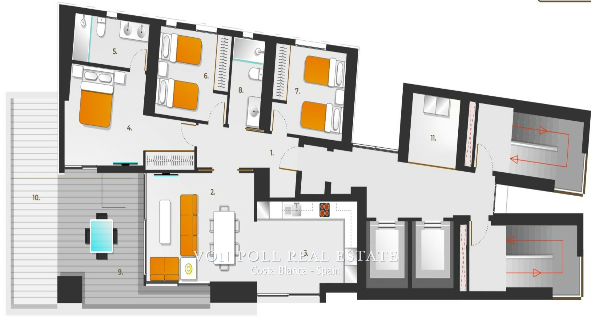 Kännetecken Upptäck det moderna livet i Benidorm, där sofistikering möter lugn. Våra nybyggda lägenheter erbjuder en oöverträffad upplevelse som ser till att du vaknar upp till hisnande havsutsikt varje dag. Drag 3 sovrum, 3 badrum: Genomtänkt utformade utrymmen för komfort och avskildhet. Seaview Bliss: Panoramautsikt från stora fönster. Balkong Retreat: Privat balkong för att varva ner och njuta av medelhavsatmosfären. Luftkonditionering: Toppmodern klimatkontroll för komfort året runt. Garage - Parkering: Säkra en plats för din bil som en extra kostnad. Område Närhet till stranden: Ett stenkast från Benidorms strand. Gastronomiskt paradis: Restauranger och barer längs gatan. Shopping Extravaganza: Shoppingterapi med butiker i det pulserande kvarteret. Healthcare Hub: Välutrustade sjukhus i Benidorm 4 minuters bilresa bort. Golf Enthusiast's Haven: Prestigefylld golfbana i Finestrat bara 15 minuters bilresa bort. Enkel tillgång till flygplatsen: Alicantes flygplats ligger bekvämt 40 km bort. Aquatic Adventures: Vattenparker bara en kort 15-minuters bilresa bort för familjekul. Exklusiva höjder – 18:e våningen med havsutsikt Marvel: För dem som söker toppen av lyx erbjuder våra lägenheter på 18:e våningen oöverträffad havsutsikt för 605 000 euro. Förhöj din boendeupplevelse med hisnande vyer från din höga sittpinne. Provisionsfri för köparen! Priser och tillgänglighet kan komma att ändras. Kontakta oss för den senaste informationen och för att boka en privat visning av ditt framtida hem. Von Poll Costa Blanca