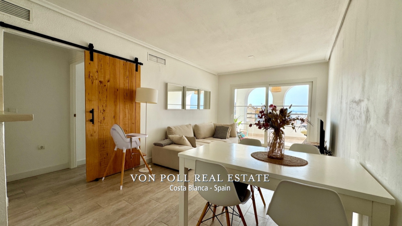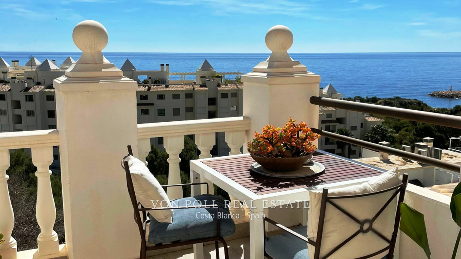 Lyxig takvåning i medelhavsstil med fantastisk havsutsikt i Mascarat, Altea Plats: Upplev charmen med medelhavsboende i denna lyxiga takvåning belägen i det prestigefyllda området Mascarat, Altea. Med enkel tillgång till stranden och hamnen kan invånarna njuta av en perfekt blandning av avkoppling och underhållning. Egenskaper: Kliv in i denna takvåning i medelhavsstil med två rymliga sovrum, två moderna badrum och ett elegant kök utrustat med vitvaror av hög kvalitet. Lägenheten erbjuder luftkonditionering, individuell uppvärmning och bekvämligheten med en hiss för enkel åtkomst till alla våningar. Kliv ut på balkongen och låt dig fängslas av den hisnande havsutsikten som sträcker sig oändligt framför dig. Bekvämligheter: Invånarna kan koppla av i de frodiga grönområdena som omger byggnaden, vilket ger en lugn koppling till naturen precis utanför dörren. Den gemensamma poolen erbjuder en lugn tillflyktsort för avkoppling och njutning mitt i medelhavsatmosfären. Bekvämlighet: Med ett garage inkluderat för extra bekvämlighet kan invånarna vara säkra på att deras fordon alltid är säkert. Takvåningens närhet till Mascarats pulserande centrum garanterar enkel tillgång till restauranger, klubbar och butiker för alla livsstilsbehov. Upplev lyxigt boende vid Medelhavet: Missa inte detta sällsynta tillfälle att äga en bit av medelhavsparadiset i Mascarat, Altea. Ordna en visning idag och fördjupa dig i lyxigt boende mitt i fantastisk havsutsikt och autentisk medelhavsarkitektur.